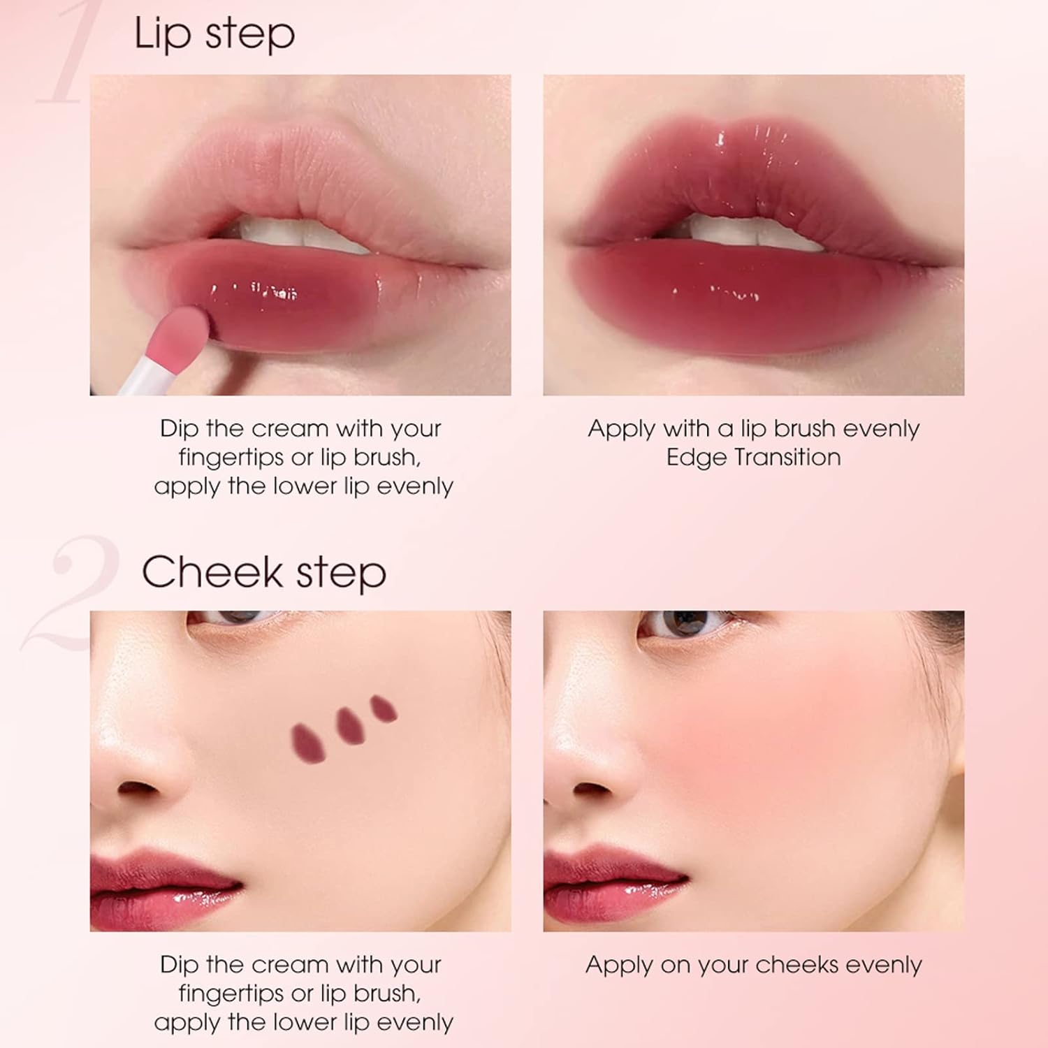 Face Cheek Blush Cream Blusher, Blushers for Cheeks Make Up Moisturizing Two-in-one Blush and Lip Gloss Face Blusher for Women Long-Lasting Sweat-Resistant Non-Greasy Blush