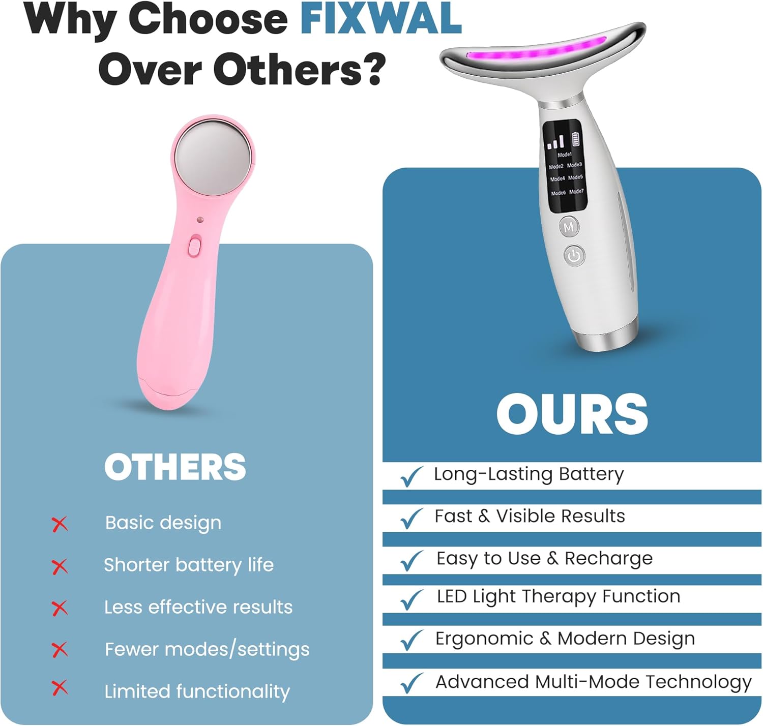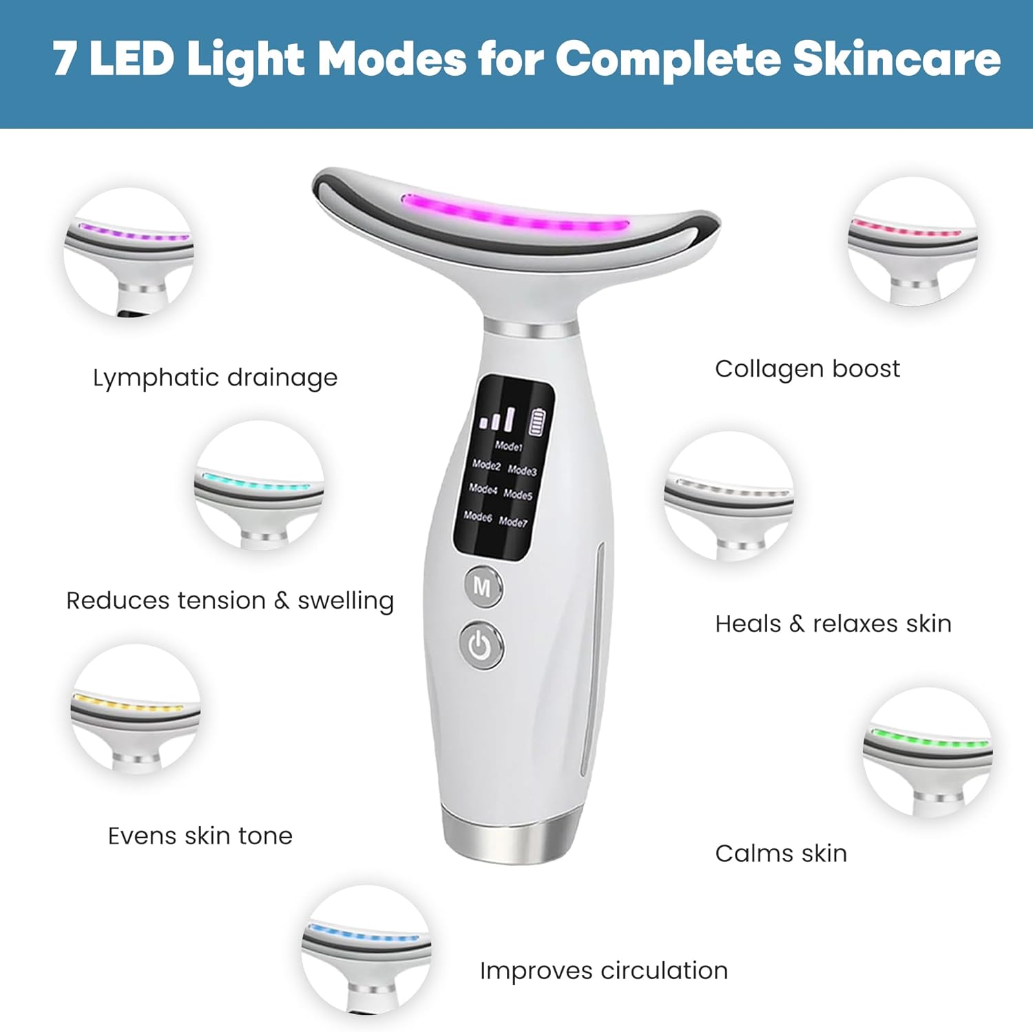 ✅ 𝐔𝐋𝐓𝐈𝐌𝐀𝐓𝐄 𝟕-𝐈𝐍-𝟏 𝐂𝐀𝐑𝐄: With 7 color lights, this Face and Neck Massager device helps with wrinkle removal, skin tightening, and neck firming through high-frequency heat & massage.