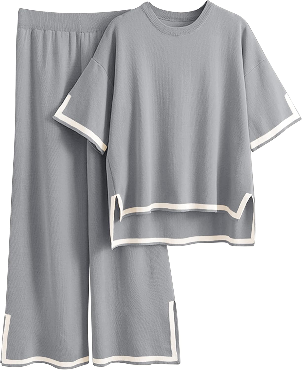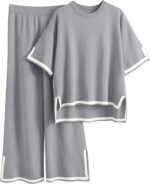 Faleave – Women’s 2-Piece Knit Sweater Set, Short Sleeve, No Buttons, Elastic Waist, Wide Leg, Lounge Pants