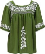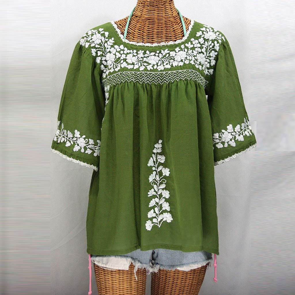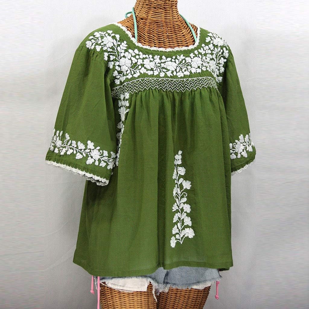 Fankle Womens Blouse Boho Floral Short Sleeve Summer Casual Loose Shirt Tops Full Size(Green,XXL)
