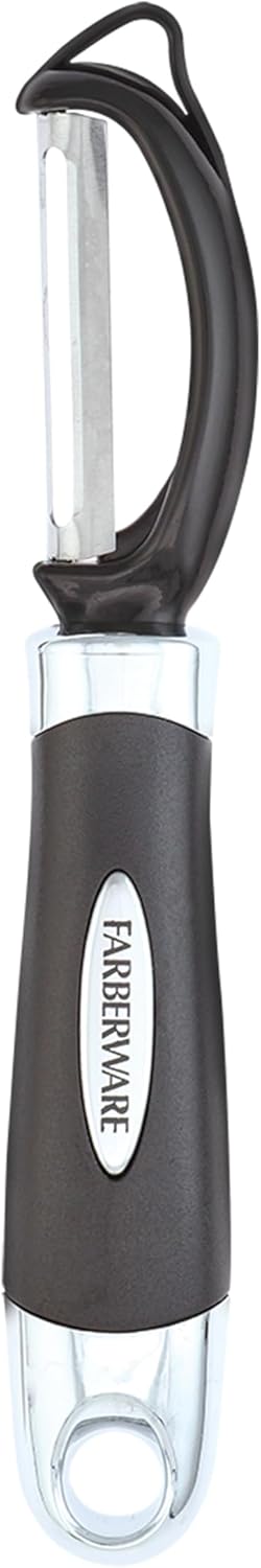 Farberware Euro Peeler, a Kitchen Essential for Quick and Easy Peeling of Produce, Chocolate, Cheeses and More. Features Hang-Hole for Easy Storage, Dishwasher Safe, Black