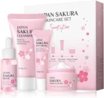 Fashion Base Skin Care Set – Sakura Skin Care Sets & Kits – Women Gift Sets with Cleanser,Serum,Eye Cream,essence Cream – Beauty Products For Women – Skin Care Routine Travel Kit (SetB)