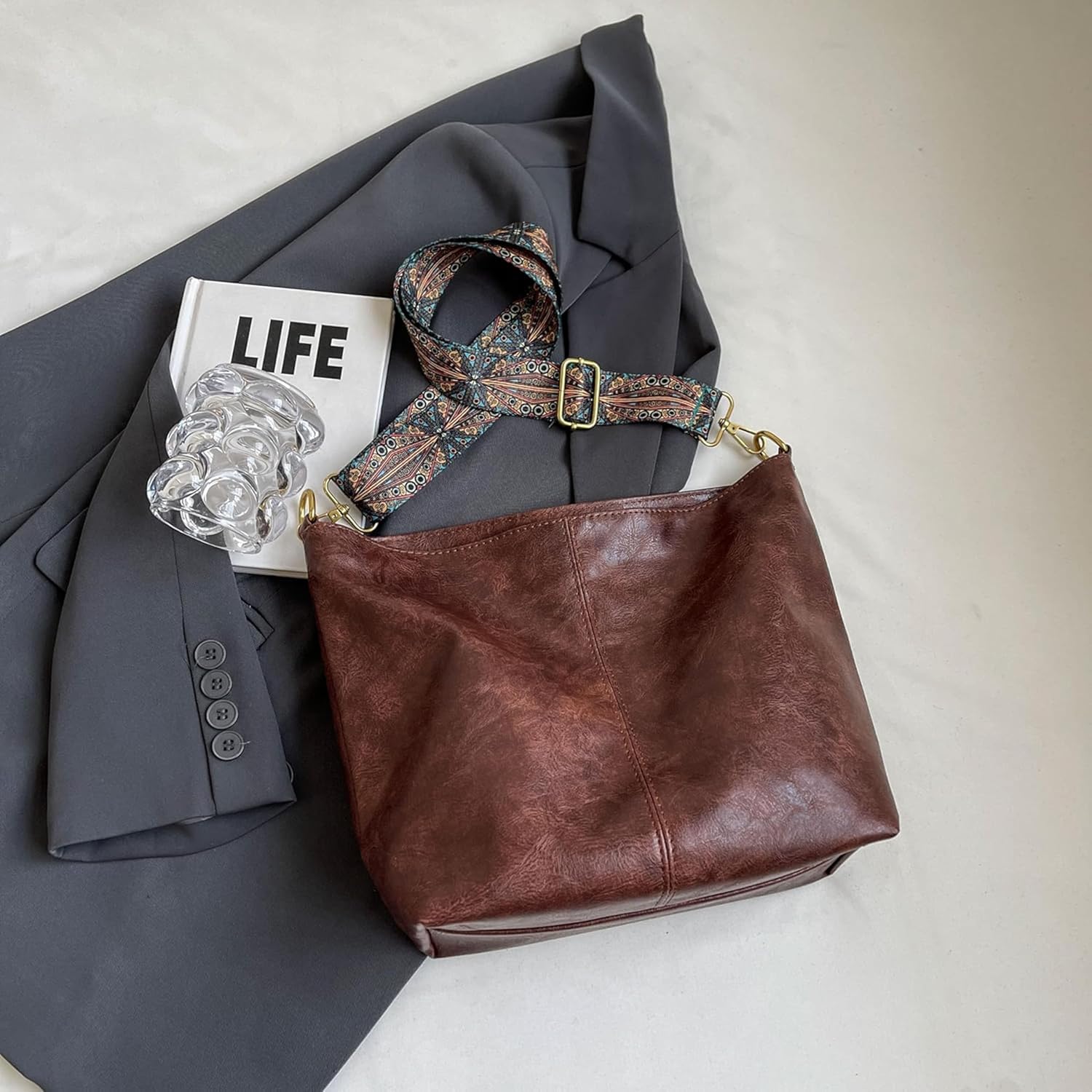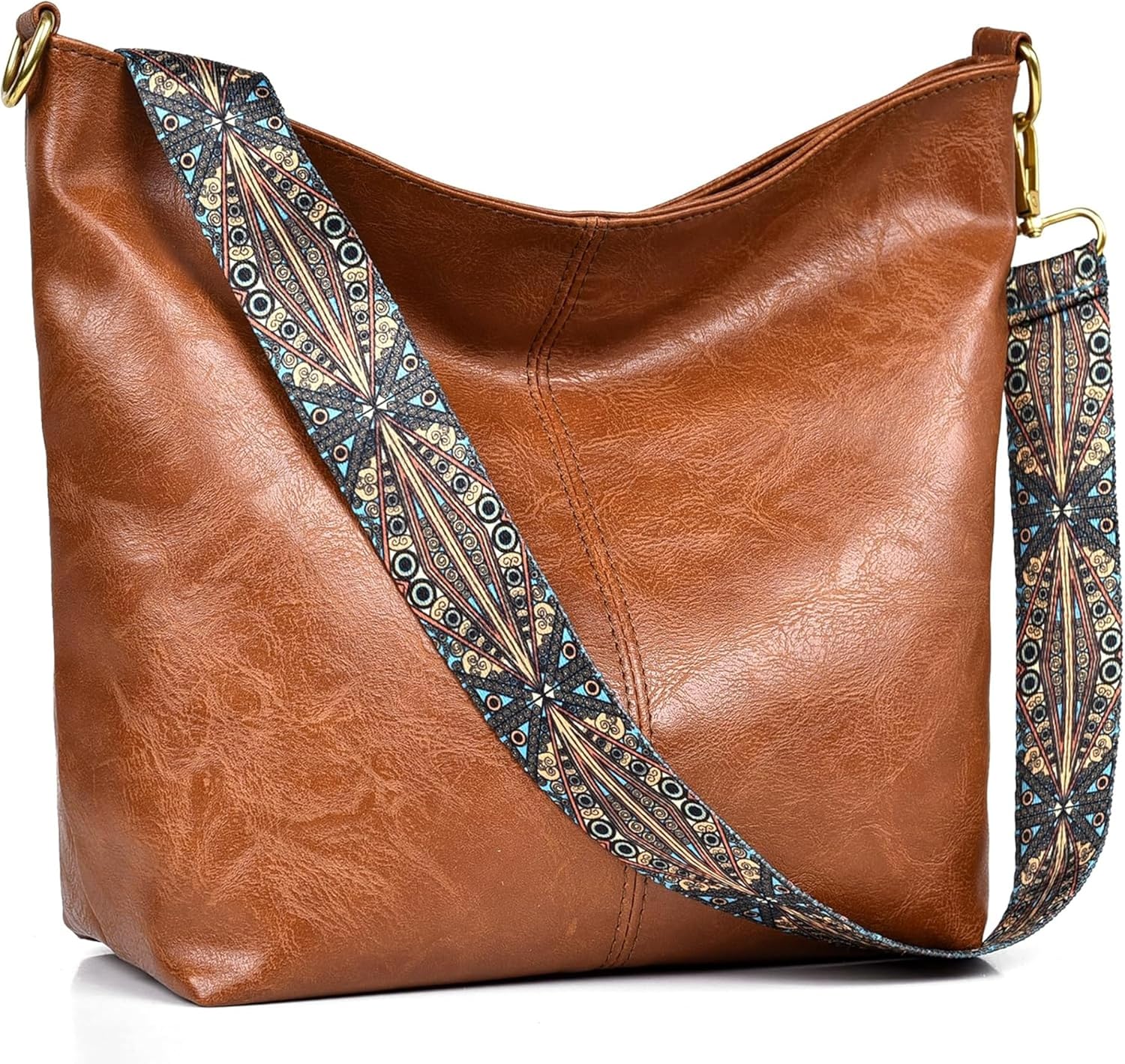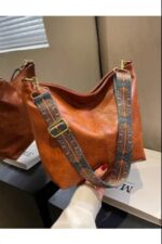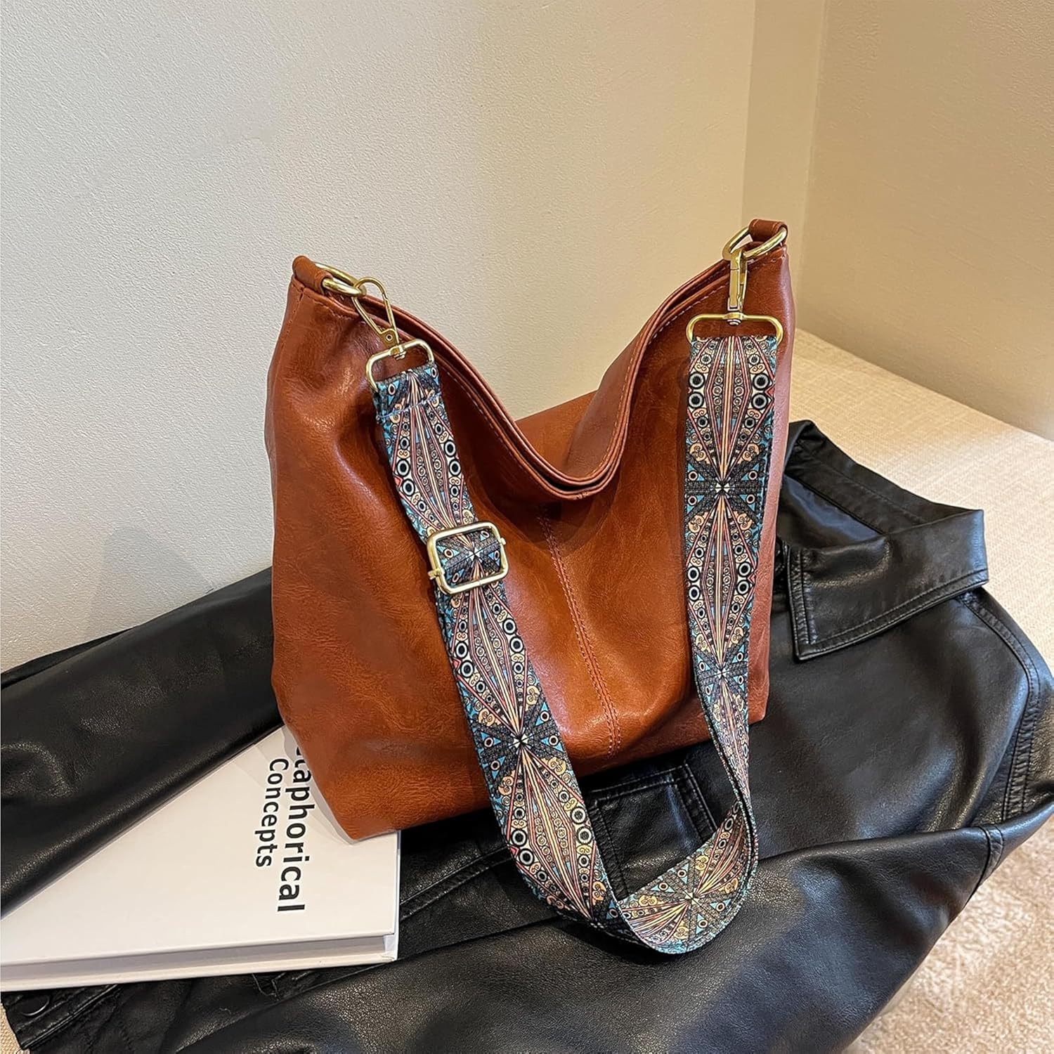 Fashionable Boho Crossbody Bag for Women Large Capacity Shoulder Purse with Adjustable Wide Geometric Strap, Vegan Leather, Travel & Work Tote, Stylish Everyday Handbag
