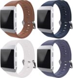 Fcloud 4Pcs Sport Bands Compatible with Fitbit Ionic Smart Watch Soft Replacement Sport Wristbands for Women/Men (Brown/Slate/White/Grey, Large)