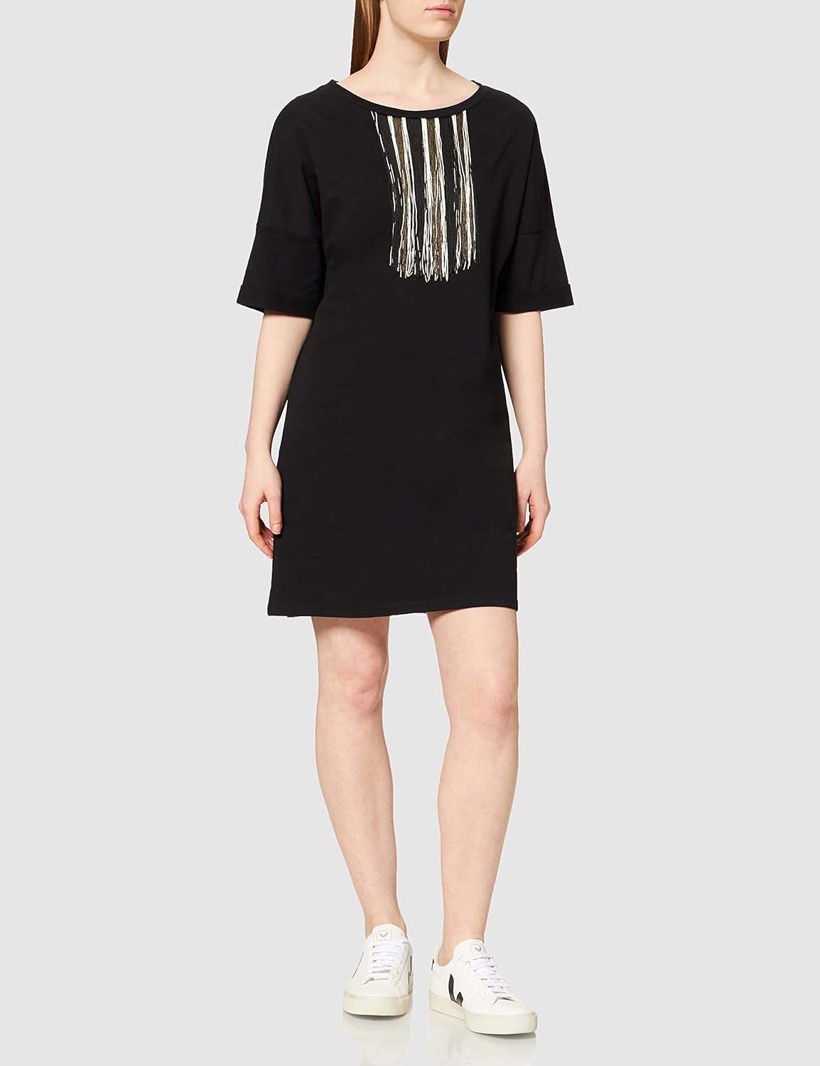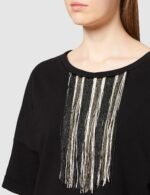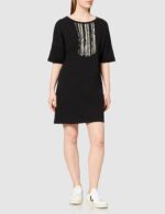This womens’ party shift mini has coloured fringe detailing at the neckline and a drop-shoulder hem. Pair with stiletto-heel ankle boots with natural hair and hoop earrings for a night out with the girls.