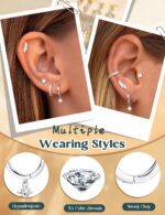 Florideco 925 Sterling Silver Earrings for Women Trendy Hypoallergenic Small Gold Hoop Earrings 14K Gold Plated Stud Earring Sets for Multiple Piercing CZ Ear Cuff Cartilage Earring Stacks