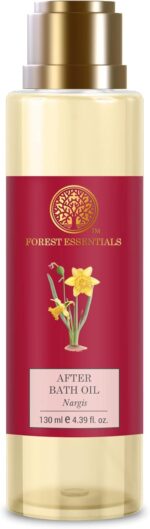 Forest Essentials After Bath Oil Nargis | Ayurvedic Moisturizing & Nourishing Shower Oil For Body | Purifying, Scented Bath Oil For Women & Men | 130 ml