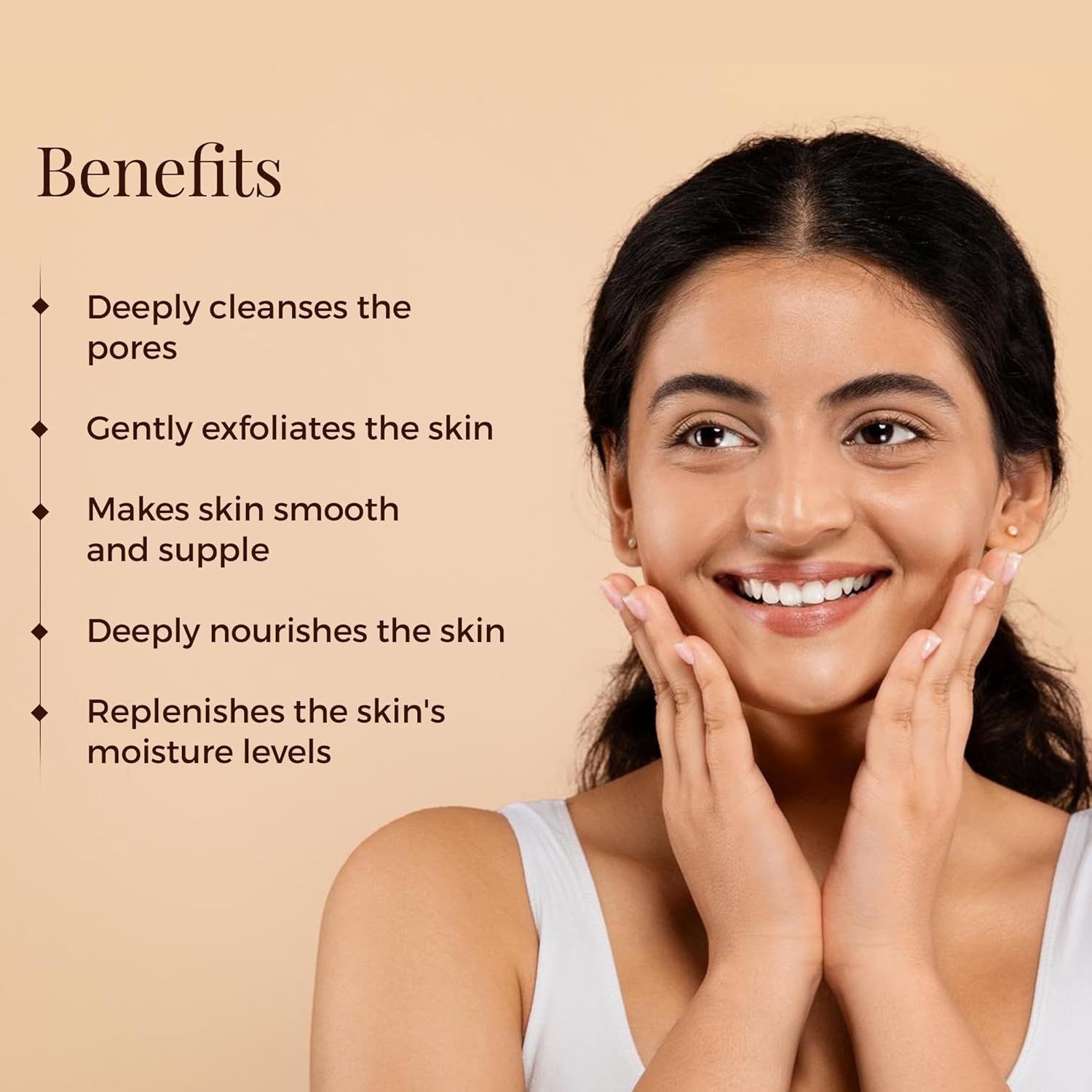 The first rule of Ayurvedic skin care is to cleanse, tone and nourish. This Deeply Nourishing Facial Cleansing Paste is a traditional blend of rich Black Sesame, Almonds, Pistachio and fresh Turmeric paste that deeply cleanses, while nourishing and replenishing the skins moisture levels every day. This also contains natural hydrators like Buttermilk, Floral waters & organic Honey, to gently polish and give the skin a fine porcelain texture and satin feel. This cleansing paste comes stored in a compact, eco-friendly and reusable glass jar.