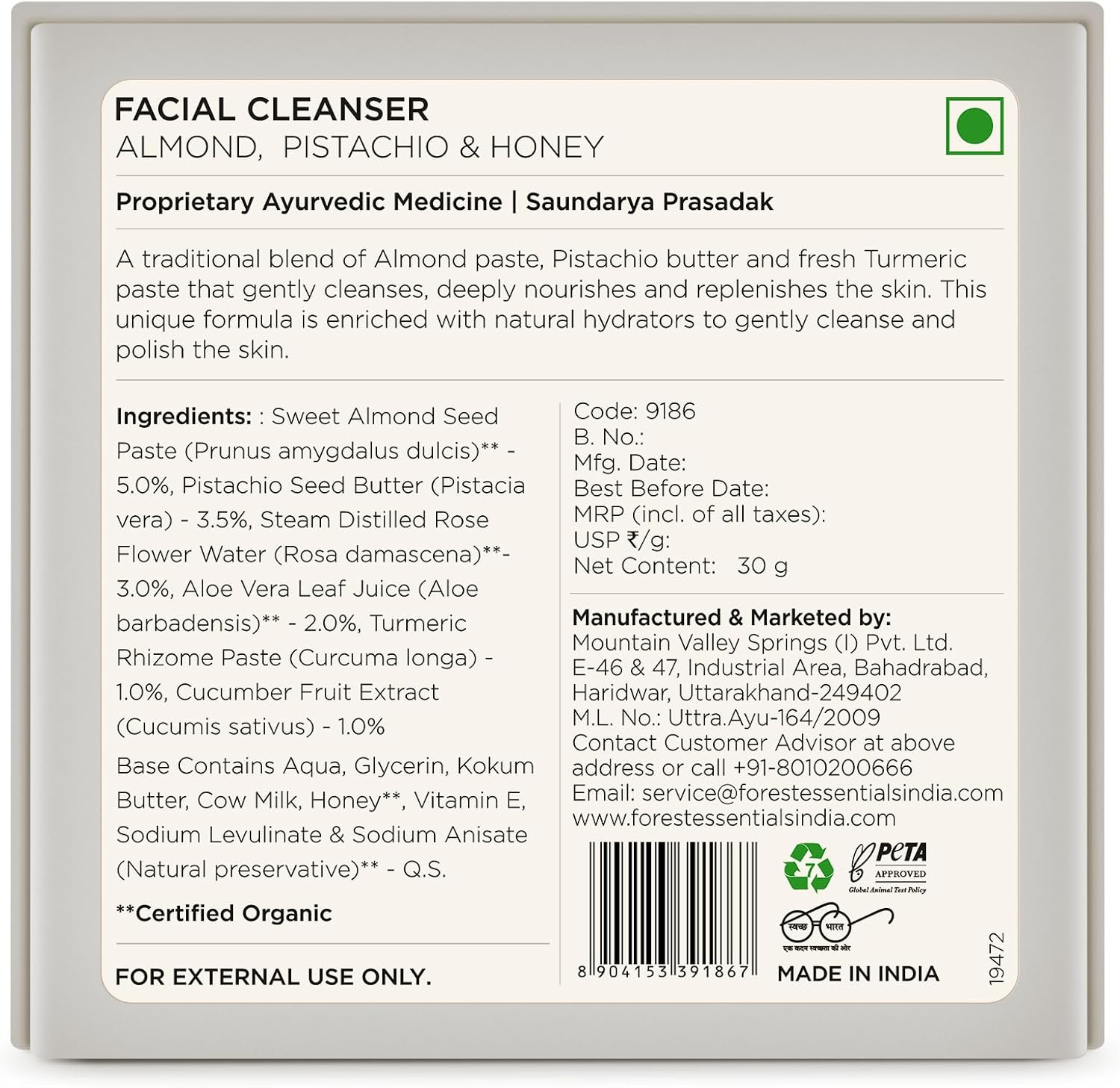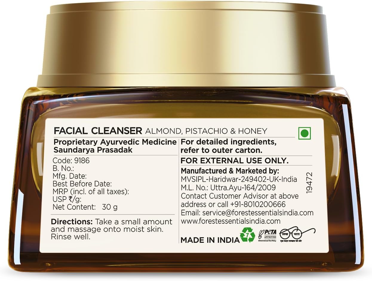 Forest Essentials Deeply Nourishing Facial Cleansing Paste Almond, Pistachio & Honey Face Scrub for dry skin To clear pores for smooth skin | Face Exfoliator For Women & Men 30 g