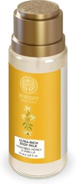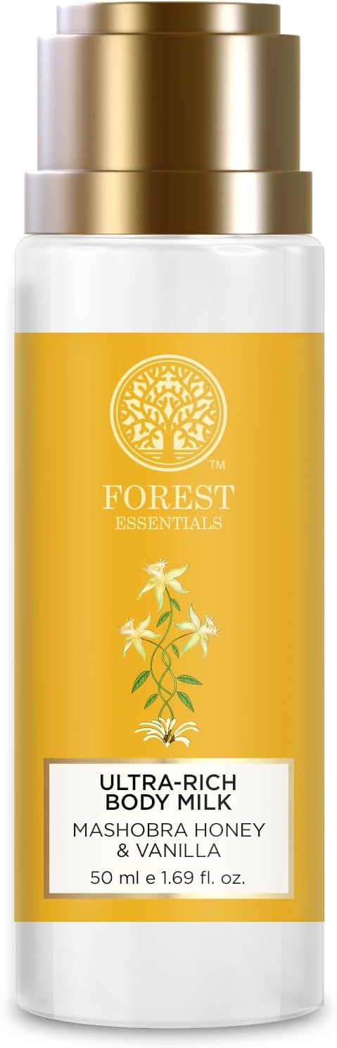 The Forest Essentials Ultra-Rich Body Milk Mashobra Honey & Vanilla is enriched with ripe giolden Honey with succulent warm Vanilla. It is infused with burnt Cane Sugar, cream of Milk and Apricot oil that seal the moisture into the skin, for a supple and plump finish.