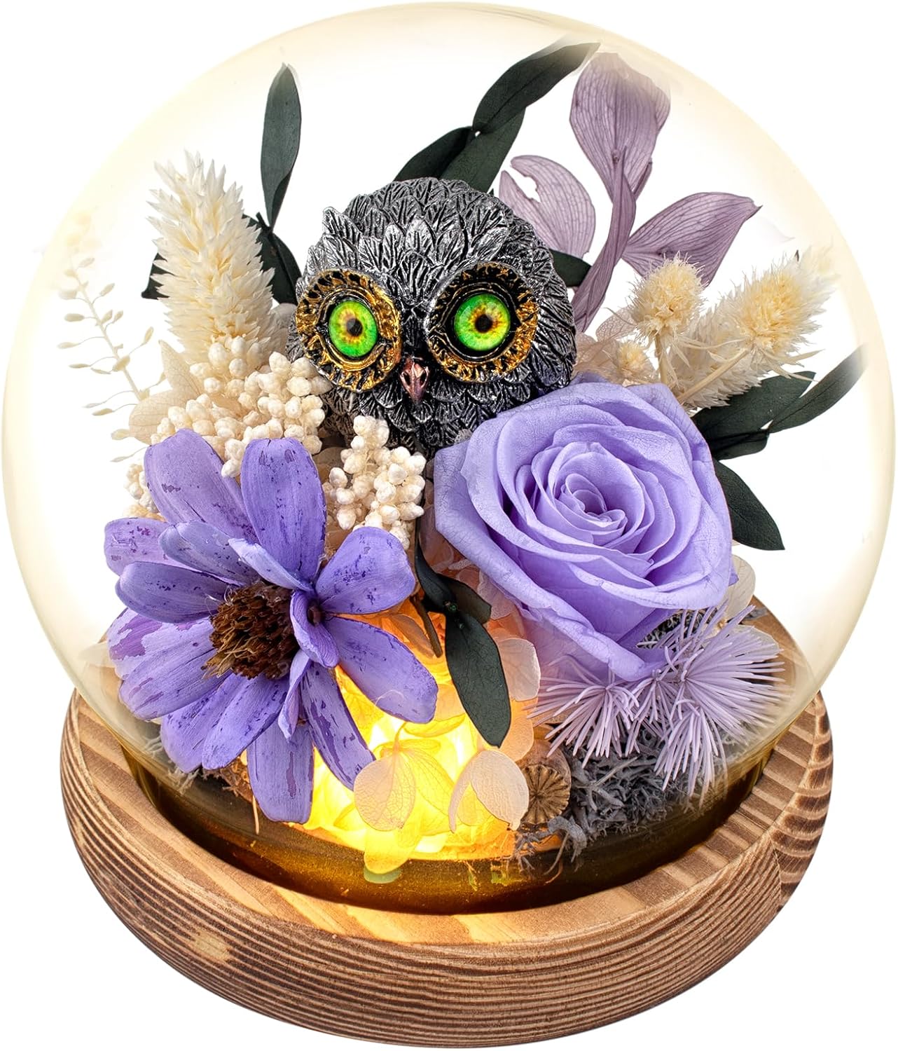 Preserved Roses with LED Light Floral Arrangement: Built-in LED lights turn this forever flowers bouquet into a soft, romantic night light. Perfect for home décor, office desk, owl bouquet displays, or as a unique holiday floral arrangement that will never fade