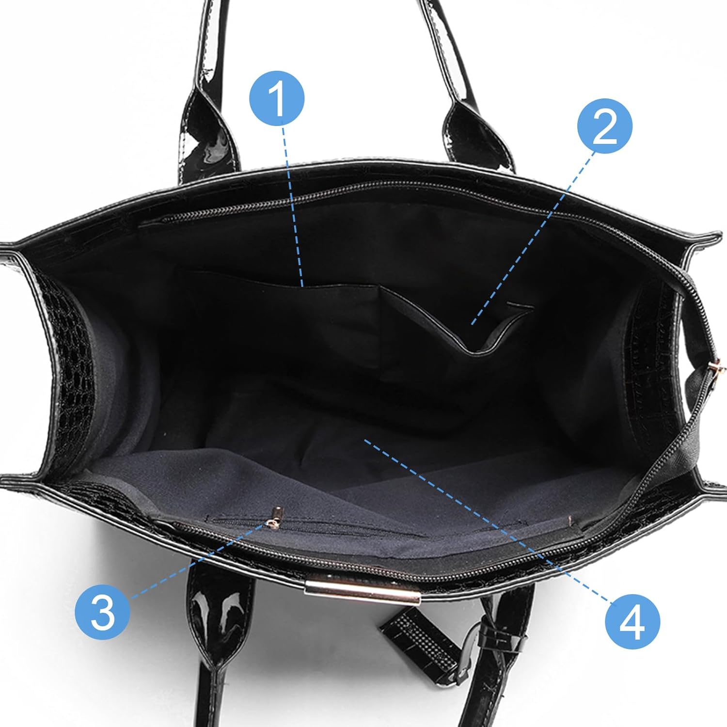 Women’s Tote Bag Shoulder Bag Set – Black Handbag, Messenger Bag and Wallets Set, Perfect Gifts for Mother, Stylish and Versatile