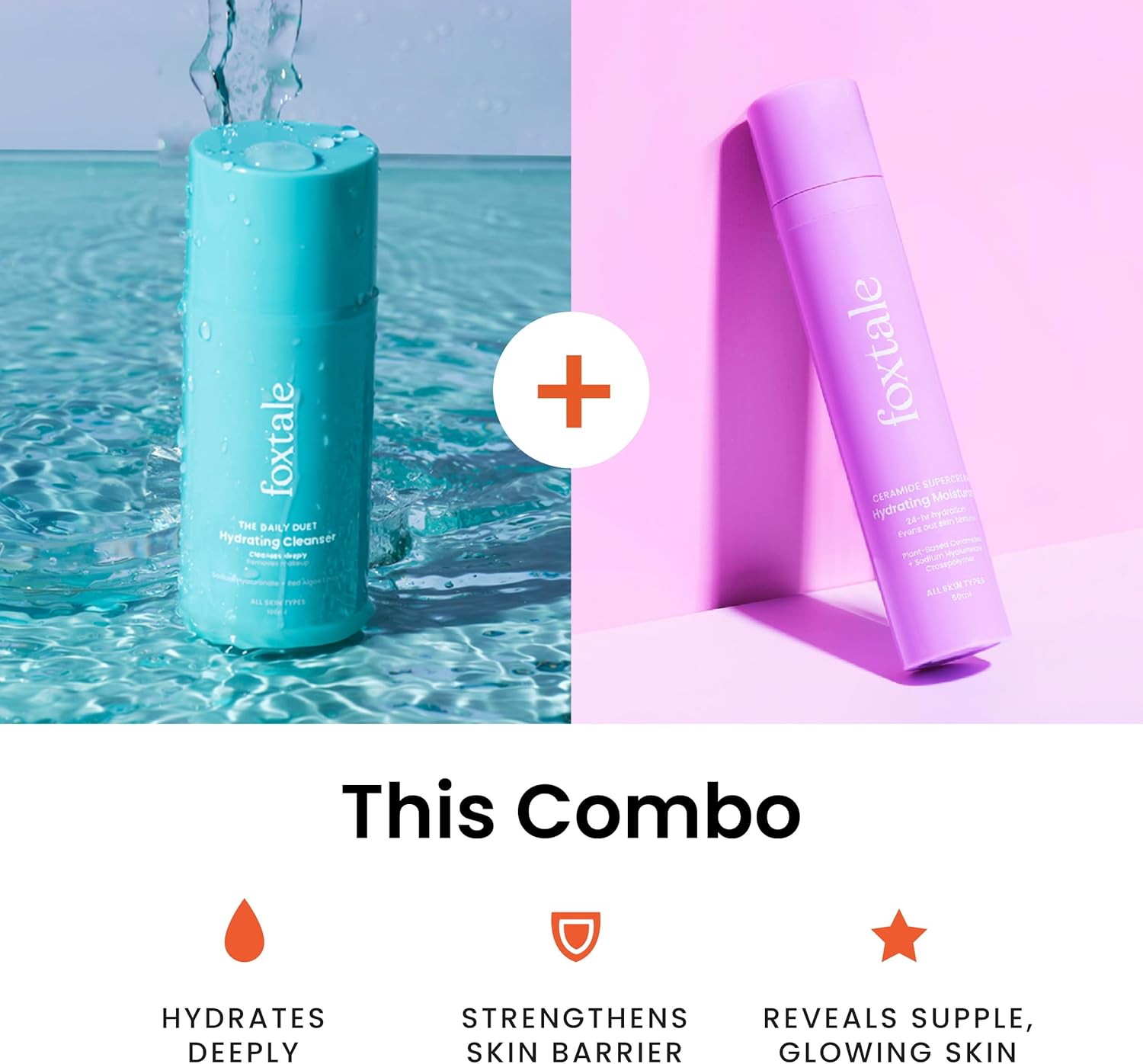 Foxtale Hydration Skin Care Kit | Cleanser Face Wash- 100ml + Ceramide Supercream Moisturizer- 50ml | Pore Cleansing, Dirt Control, Barrier Repair | Skincare Combo Set for Women, Men | All Skin Types