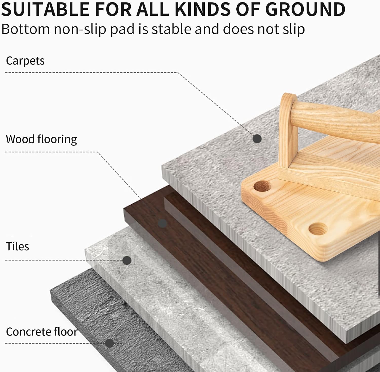 Material:Our solid wooden Push Up Bar Used high-quality Ash wood, The handle is polished and smooth without burr, is more anti-slip and sweat-absorbing than ABS plastic products, safe and durable.