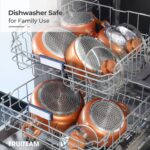 【Fast & Even Heat Composite Base Induction】With three-layer bottom, FRUITEAM aluminum cooking set heats food evenly and fast, compatible with gas, electric, ceramic, glass, stovetops and induction cooktops, etc. Safe for most cooking methods