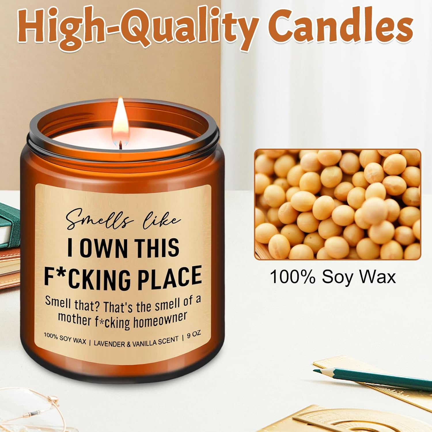 Funny Scented Candle New Home Gift, House Warming Gifts New Home Candle for Women Men, Lavender Scented Candles 9 oz, Housewarming Gifts for Couple Moving in Essentials House Gift Ideas (Brown)
