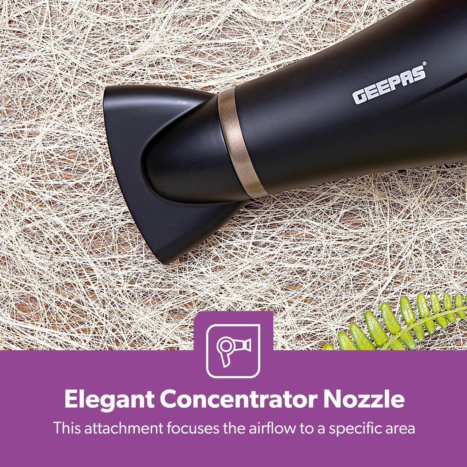Geepas Hair Dryerairflow Speed 95Km/H: Fast Drying & Styling Cool Shot Function Ac 220-240V 50/60Hz 2000W 2 Speed/3 Heat Settings 2000Watts: Professional Styling Professional Ac Motor: Longer Lifespan.
