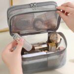 Vacation-Ready: Don’t embark on your vacation without this Double Layer Mesh Makeup Bag. It’s a versatile addition to your travel essentials, making it easy to stay organized and stylish no matter where you go.