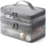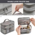 Generic Travel Makeup Bag,Double Layer Travel Mesh Bag for Women,Travel Essentials Toiletry Bag Makeup Organizer Large Capacity Zipper Cosmetic Bag Vacation Essentials for Women (grey)