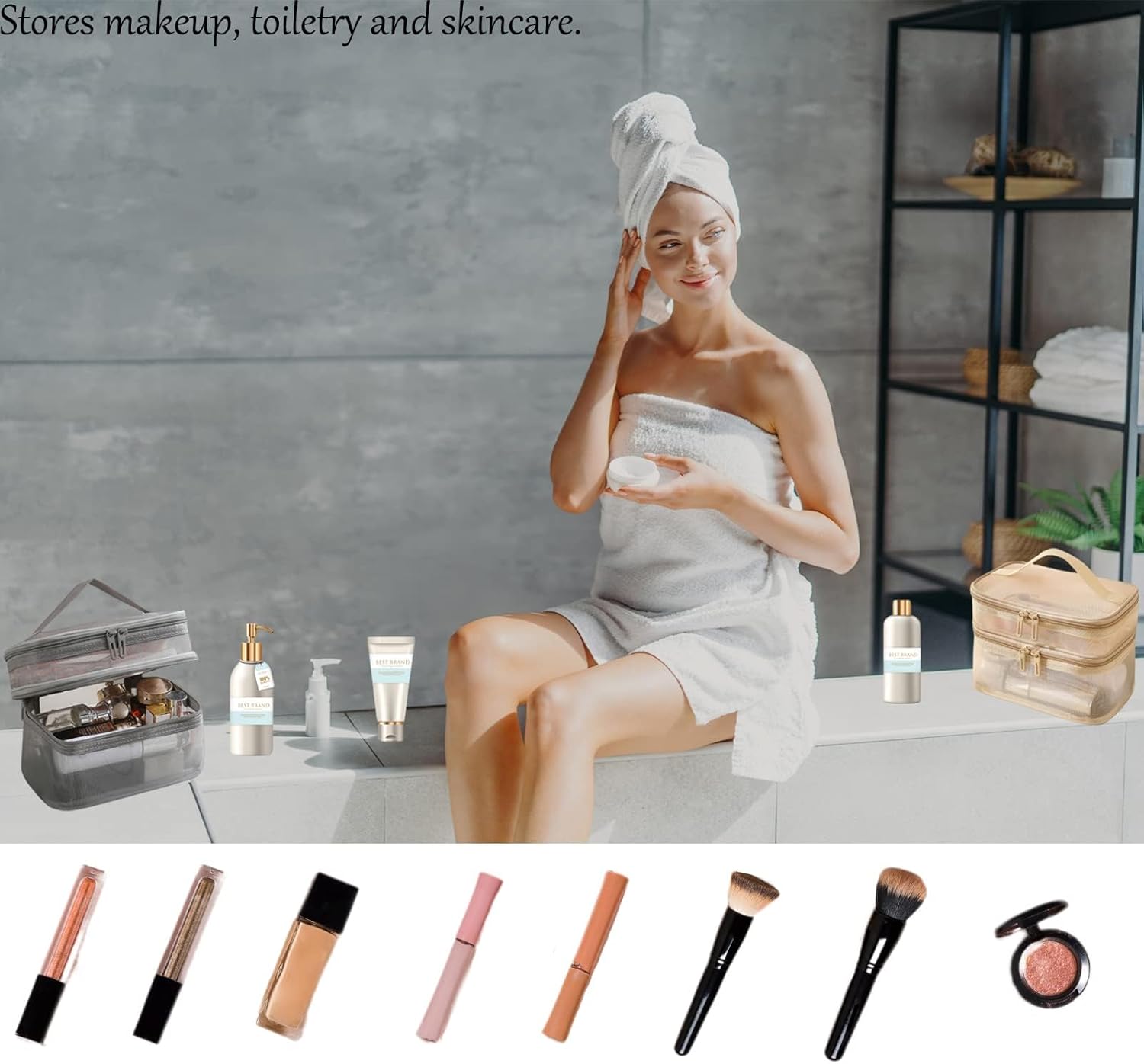 Travel Makeup Bag,Double Layer Travel Mesh Bag for Women,Travel Essentials Toiletry Bag Makeup Organizer Large Capacity Zipper Cosmetic Bag Vacation Essentials for Women