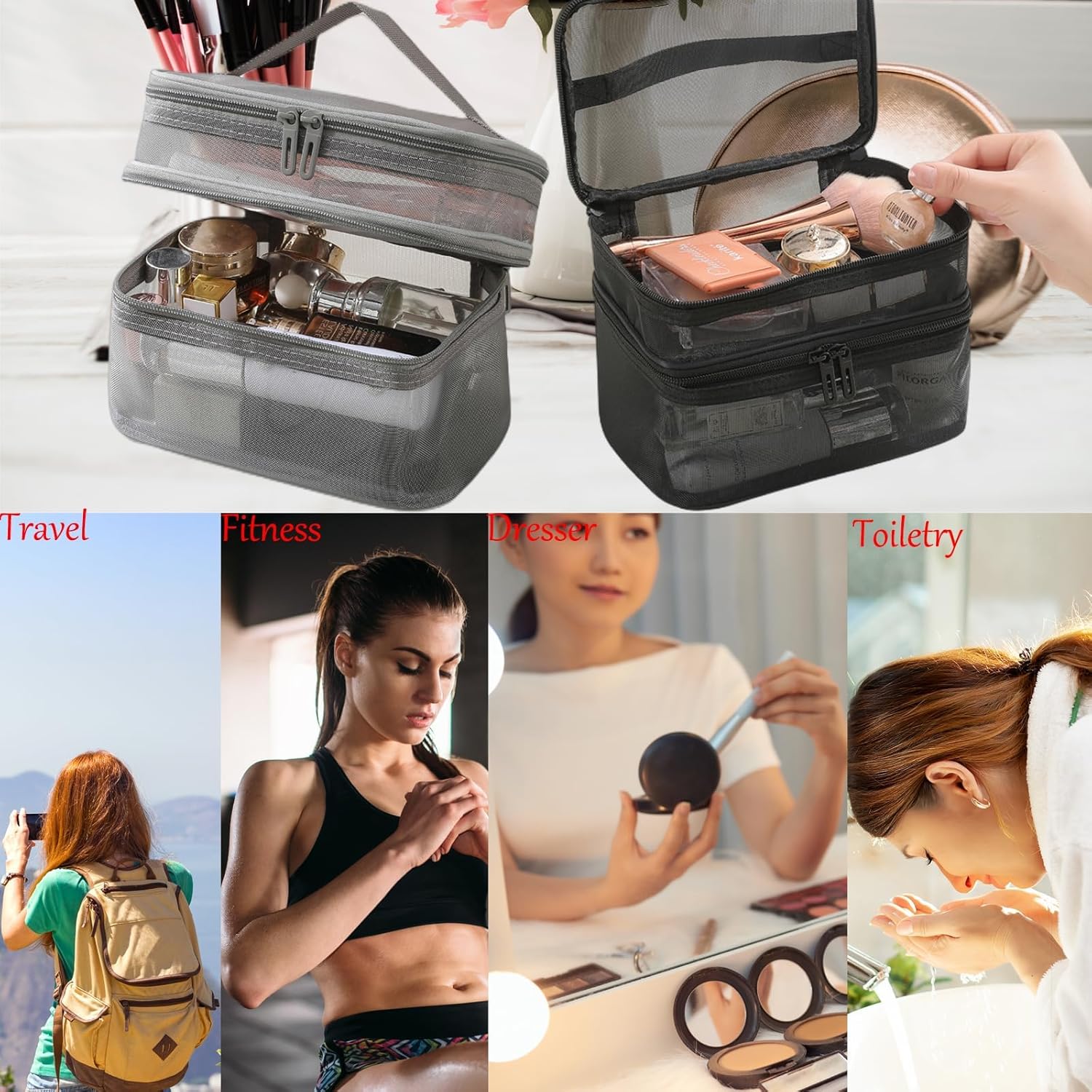 Vacation-Ready: Don’t embark on your vacation without this Double Layer Mesh Makeup Bag. It’s a versatile addition to your travel essentials, making it easy to stay organized and stylish no matter where you go.