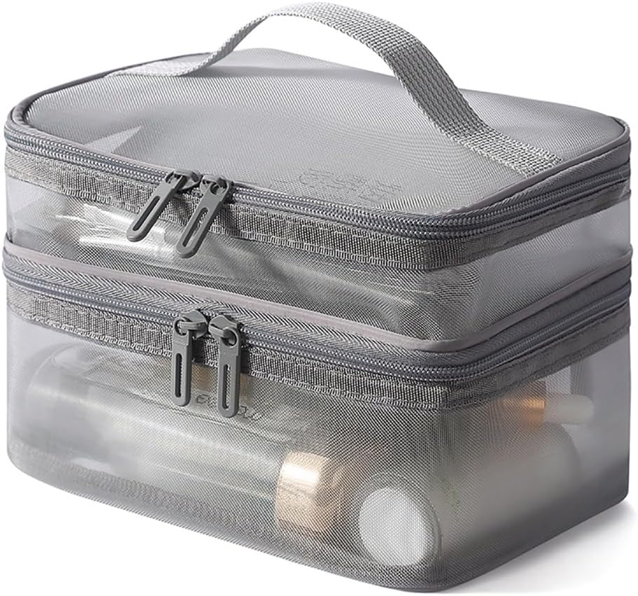 Generic Travel Makeup Bag,Double Layer Travel Mesh Bag for Women,Travel Essentials Toiletry Bag Makeup Organizer Large Capacity Zipper Cosmetic Bag Vacation Essentials for Women (grey)