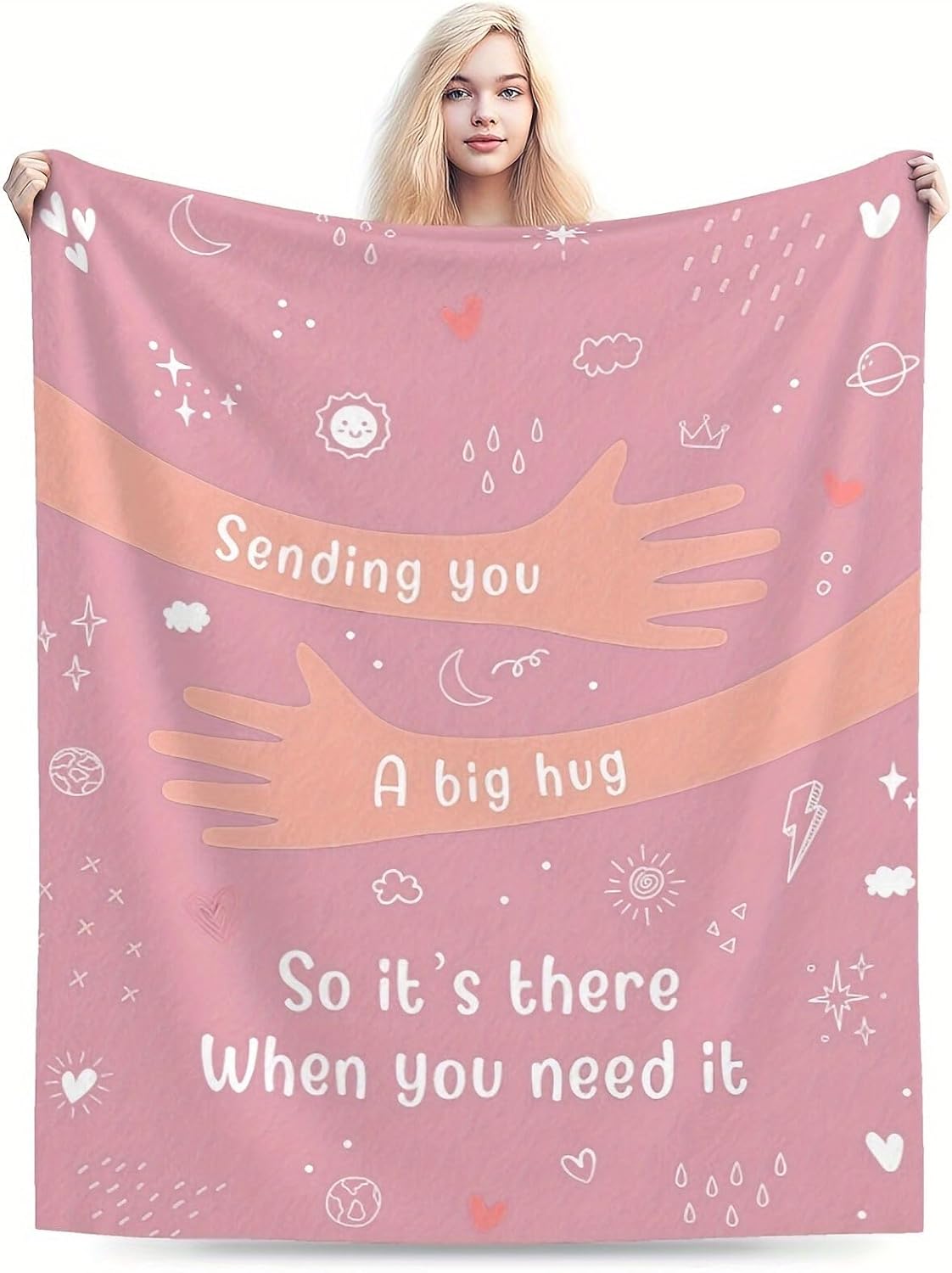 Comforting Hug & Emotional Support Blanket: This soft and cozy flannel blanket features a heartwarming embrace design, offering a sense of comfort and emotional support, perfect for moments when you need a little extra warmth and encouragement