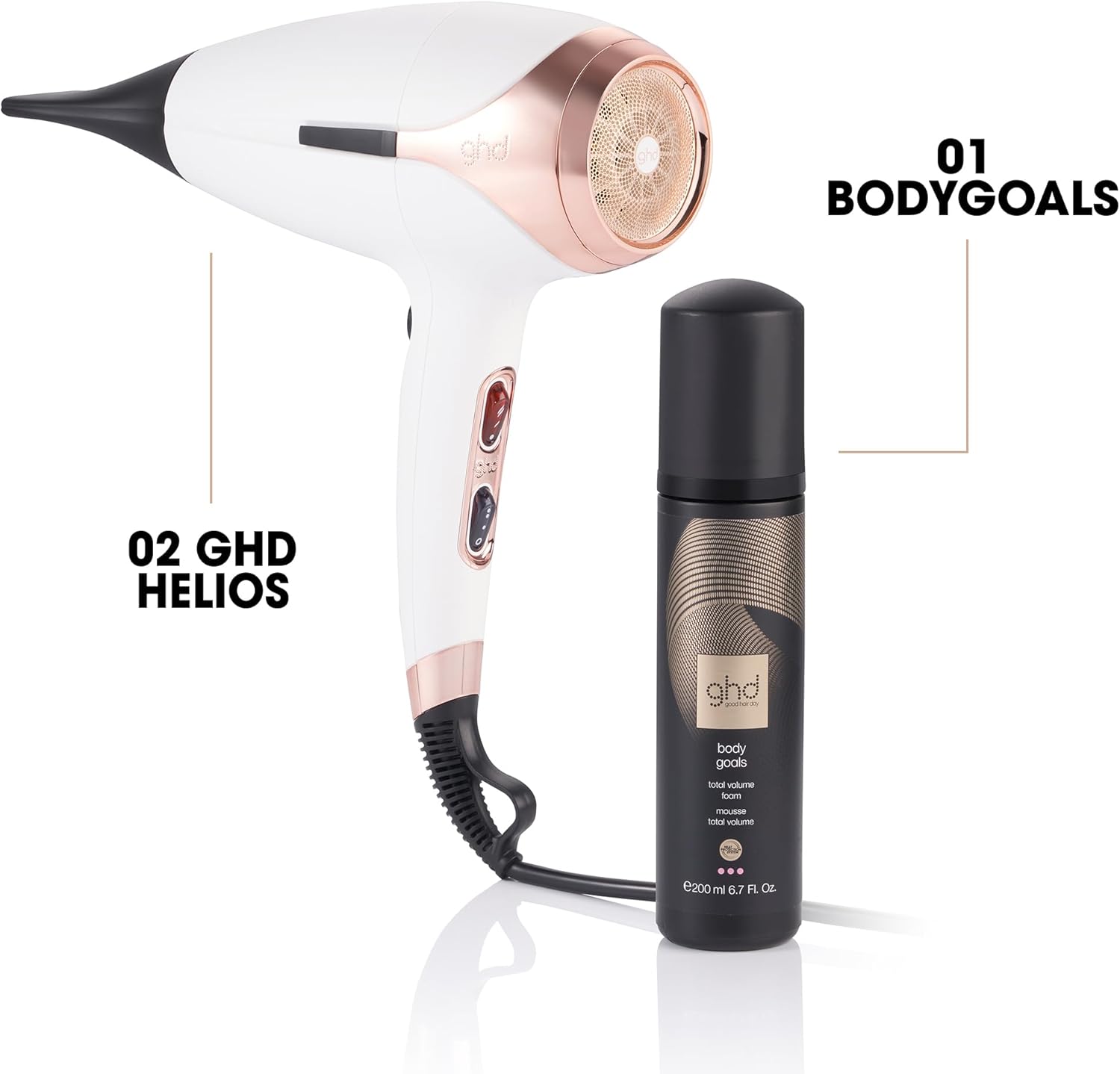 ghd Helios Professional Hair Dryer in White – Lightweight, Fast Styling, Ultimate Styling Control – For All Hair Types (UK Plug)