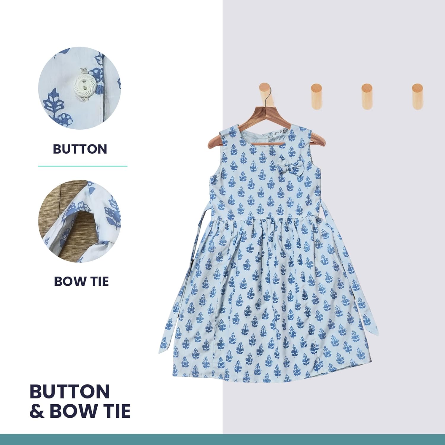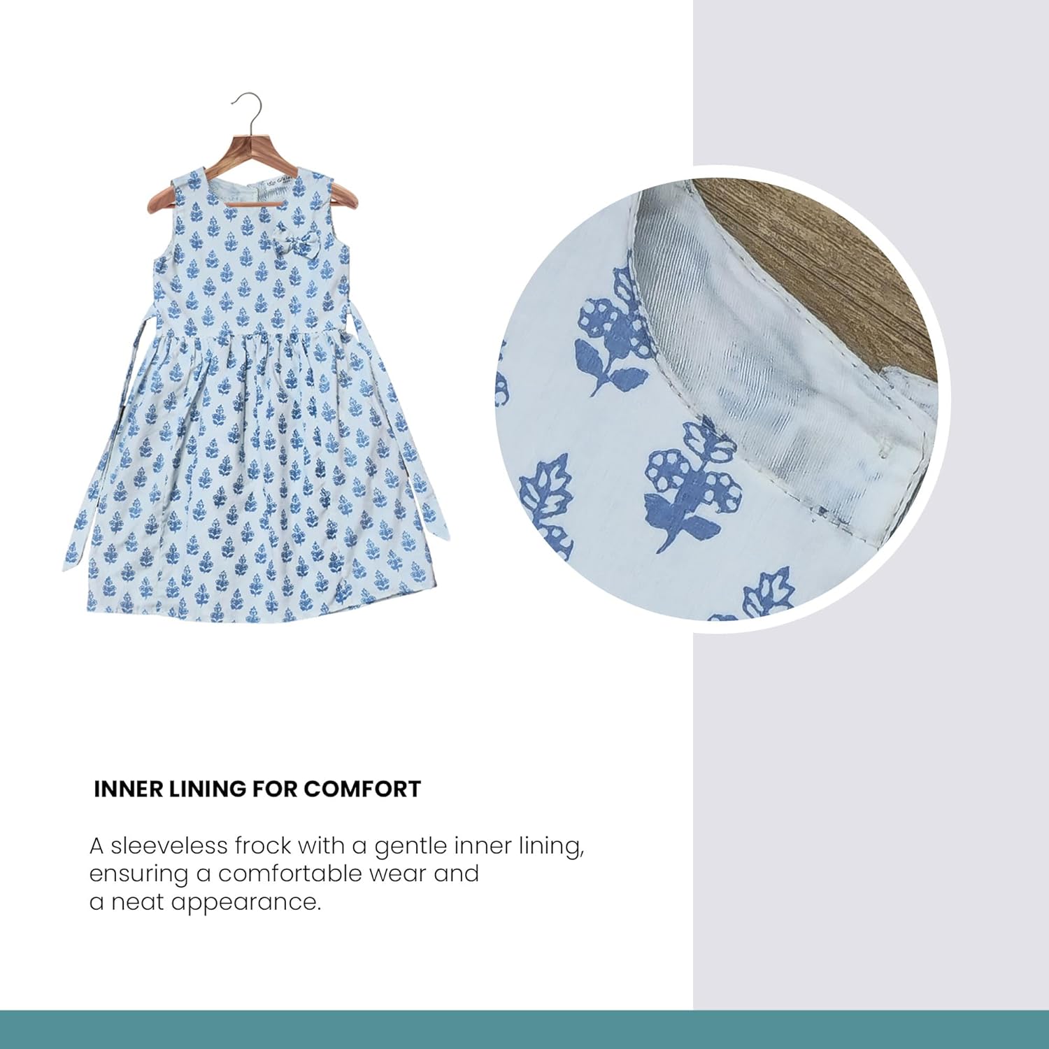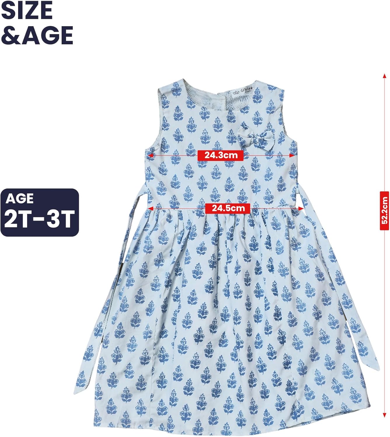 Girls Sleeveless Floral Cotton Frock Dress Toddler Dresses for Baby Girls Kids Casual outfit with Elegant Attached Bow.