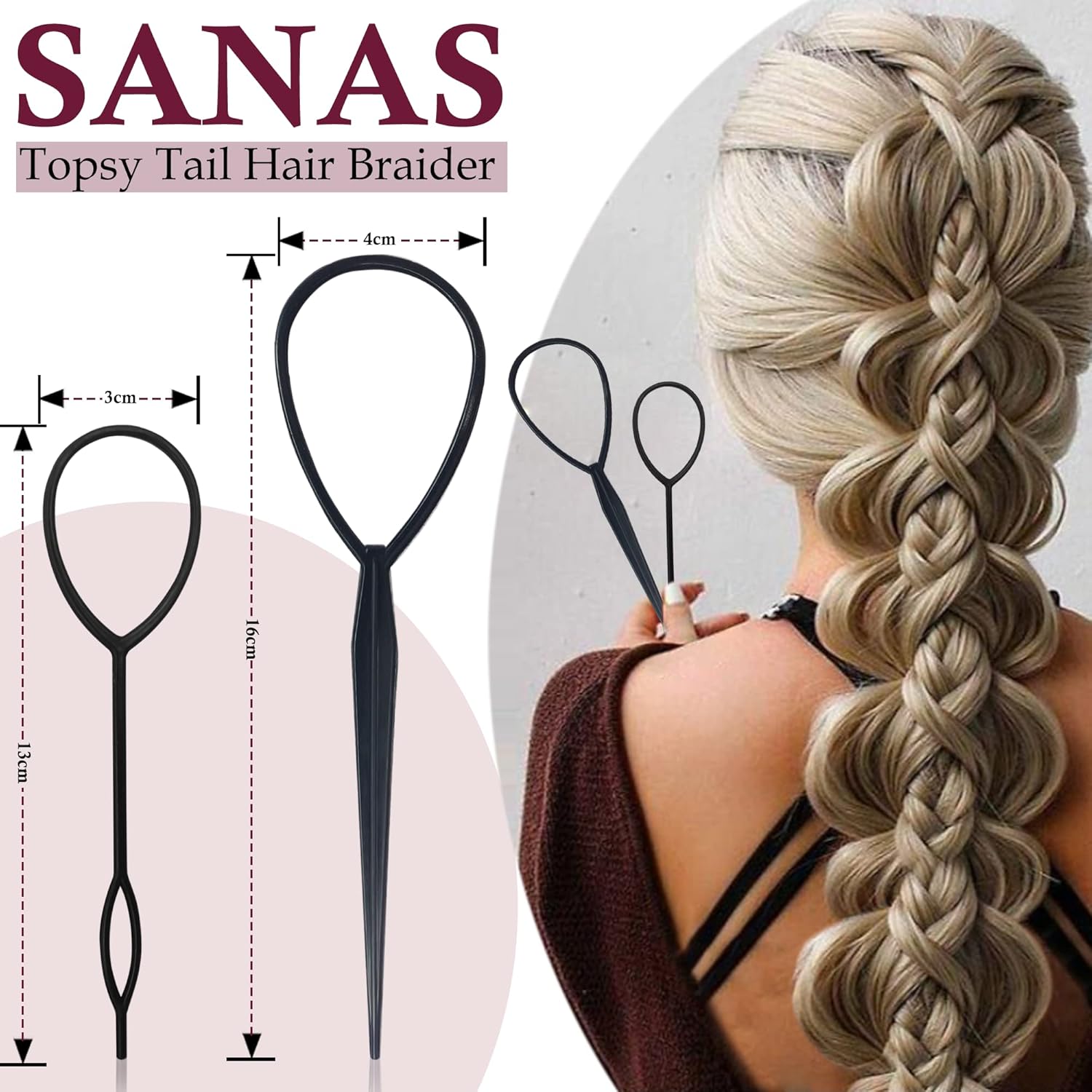 PACKAGE CONTENT: 2 Pieces of Topsy Tail Hair Braid Plastic Ponytail Maker Hair Accessory of Black Colour. and 1 Braiding tool Combo