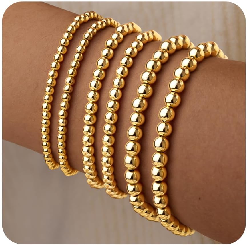 Introducing our Gold Bead Bracelet Set, a stunning fusion of elegance and durability designed for the discerning jewelry enthusiast. Crafted from high-quality 14K copper with a lavish gold plating, these bracelets boast a timeless aesthetic that exudes sophistication. The set offers versatility with beads in three sizes—4mm, 5mm, and 6mm, with two pieces of each size, allowing you to mix and match or stack according to your personal style. Impeccably crafted, these bracelets are colorfast, ensuring the radiant gold hue remains vibrant over time. The lead-free and nickel-free composition makes them anti-allergy, catering to diverse skin sensitivities. Uniquely resilient, these bracelets are waterproof, allowing you to adorn yourself with grace in any setting. Each set is elegantly packaged, enhancing the joy of unwrapping and making it a delightful gift for yourself or a loved one. Elevate your accessory collection with the enduring charm and quality craftsmanship of our Gold Bead Bracelet Set, where style meets substance.