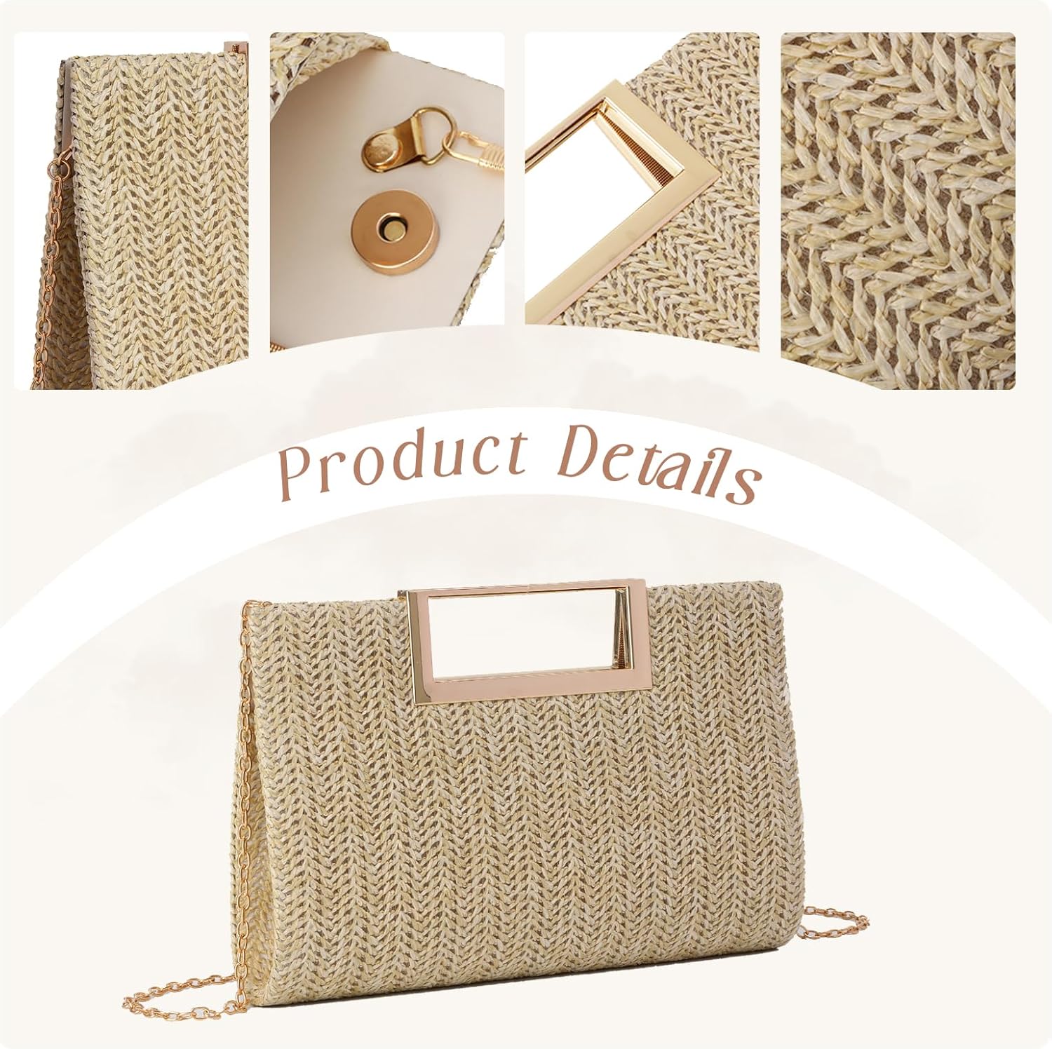 GOKTOW Straw Clutch Top Handbags Raffia Bag Purse Woven Tote CrossBag for Women Beach Summer Travel 2024