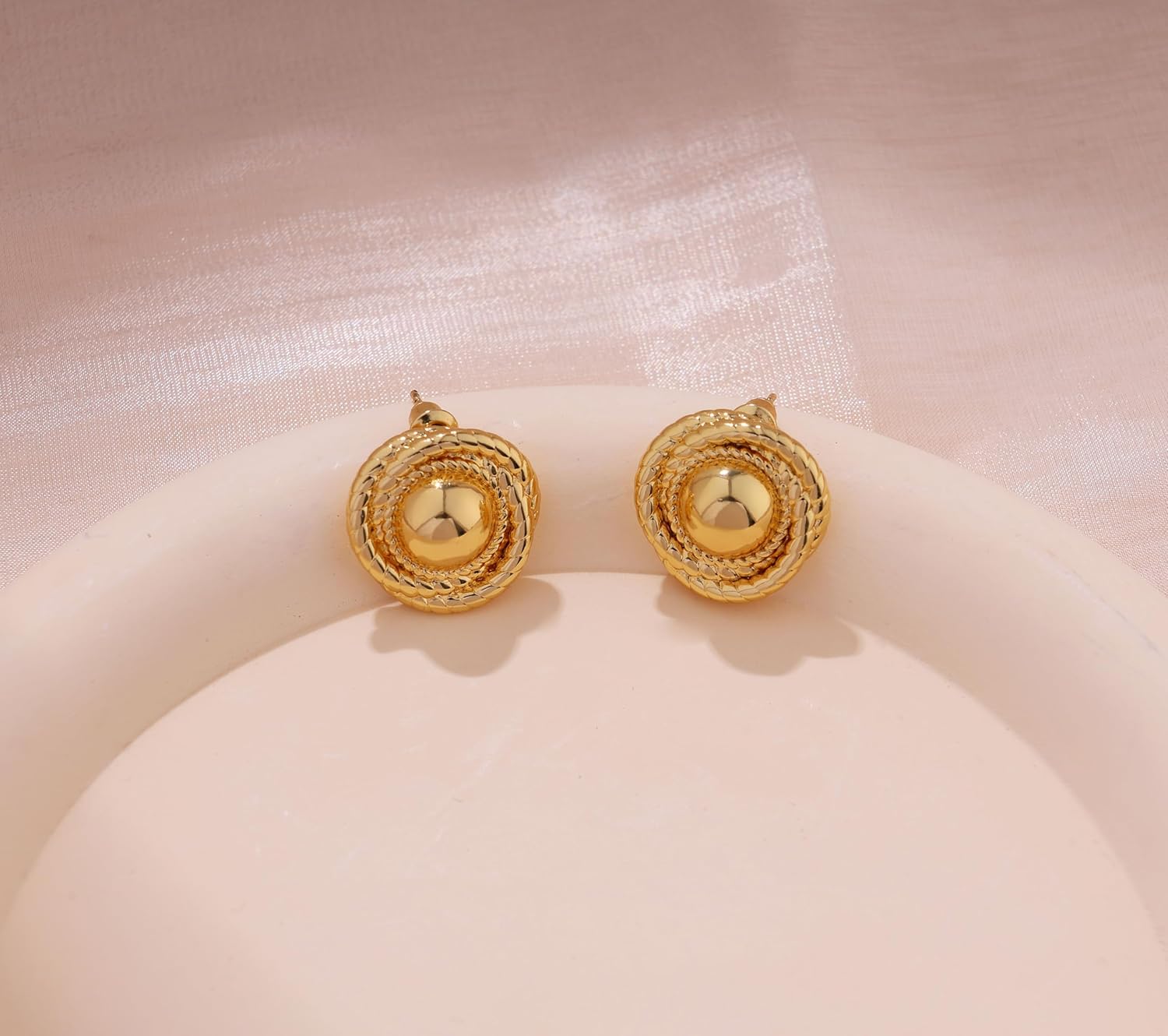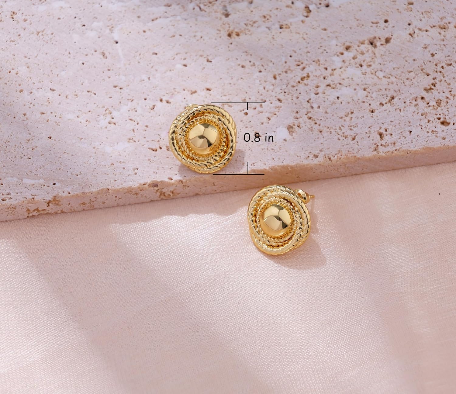 Gold Earrings for Women,Chunky Gold Statement Earrings Dainty 14K Gold Plated Earrings Big Gold Chunky Vintage Earrings Hypoallergenic Gold Stus Earrings for Women Trendy Gold Jewelry