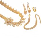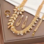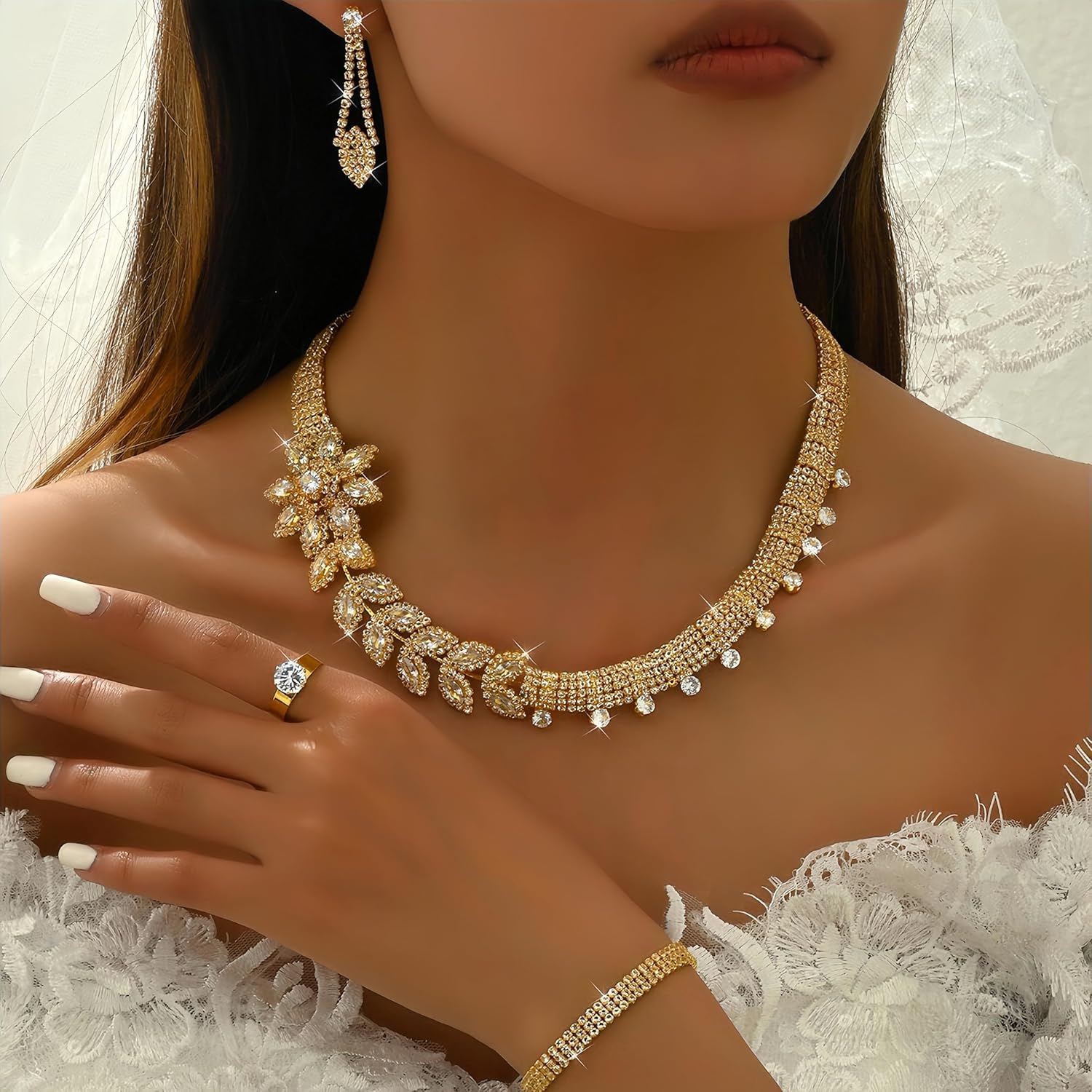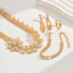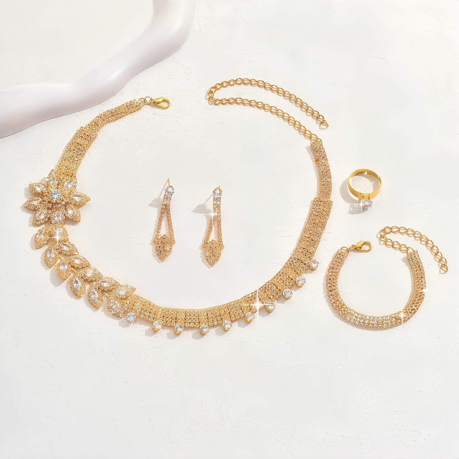 Design: This elegant gold-plated necklace set for women features a flower necklace with sparkling zircon gemstones and stunning earrings Ring Bracelet.