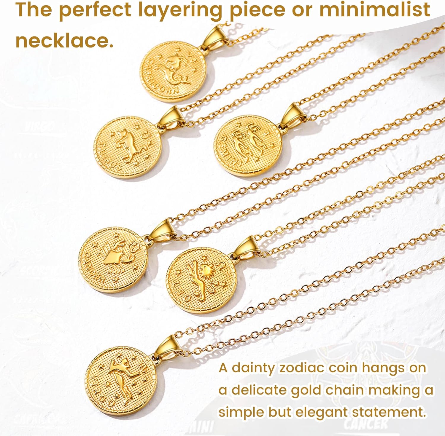GOLDCHIC JEWELRY Gold Zodiac Coin Necklace for Women Men, Constellation Horoscope Astrology Pendant Necklaces Lucky Jewelry