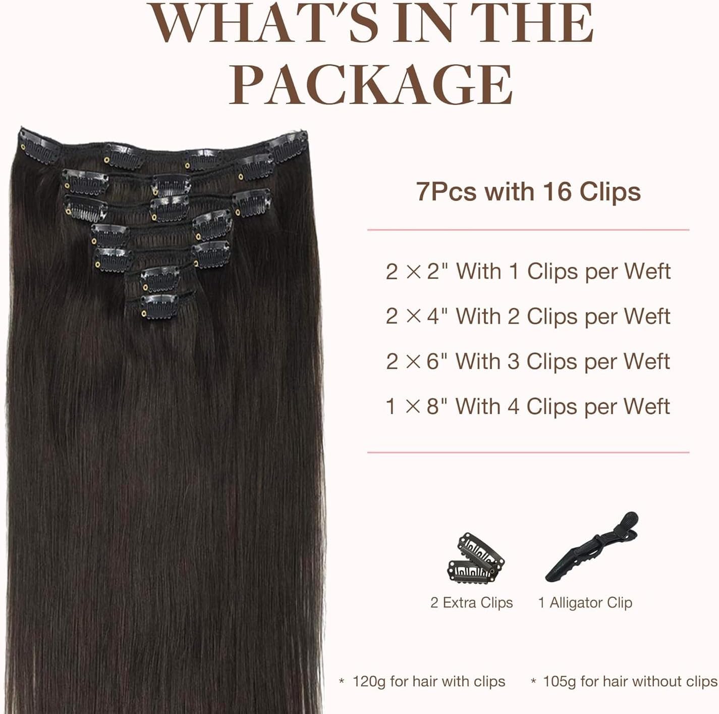 GOO GOO Clip in Hair Extensions Real Human Hair, 20inch 120g 7Pcs, #2 Dark Brown, Remy Human Hair Extensions Clip ins for Women, Natural Human Hair
