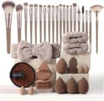 Goodern Makeup Brushes Set,40PCS Makeup Tool Set Professional Cosmetic Brushes with Makeup Sponges Powder Puffs and Face Wash Headband Wrist Bands Travel Make up Brushes Kit for Women Girls-Brown