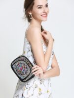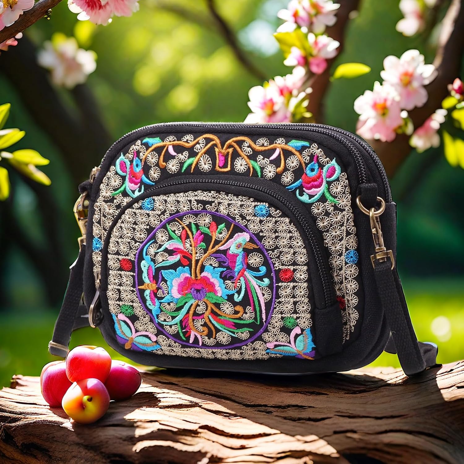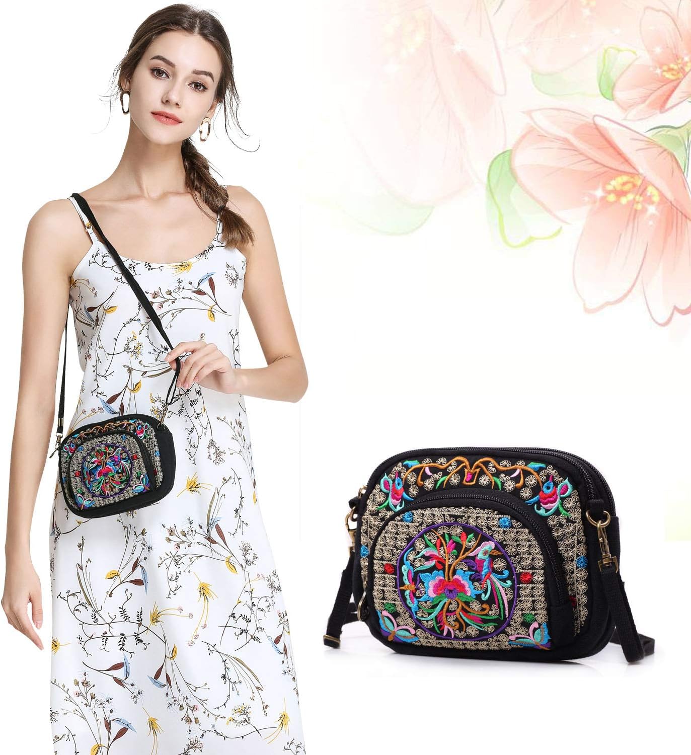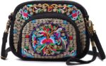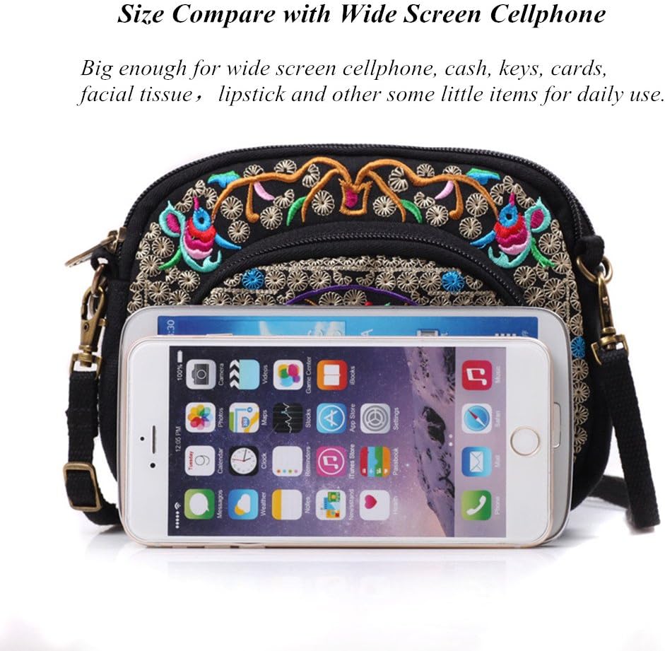 Goodhan Flowers Embroidery Canvas Crossbody Bag, Women Messenger Bag, Cellphone Pouch Purse