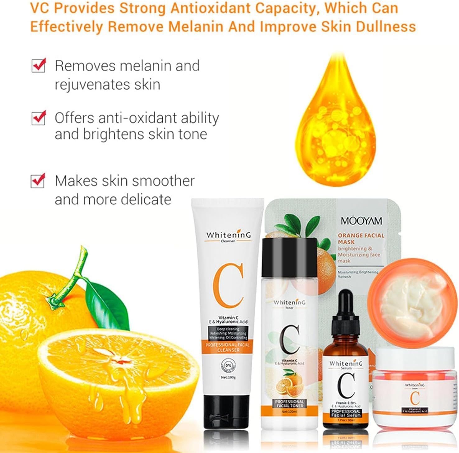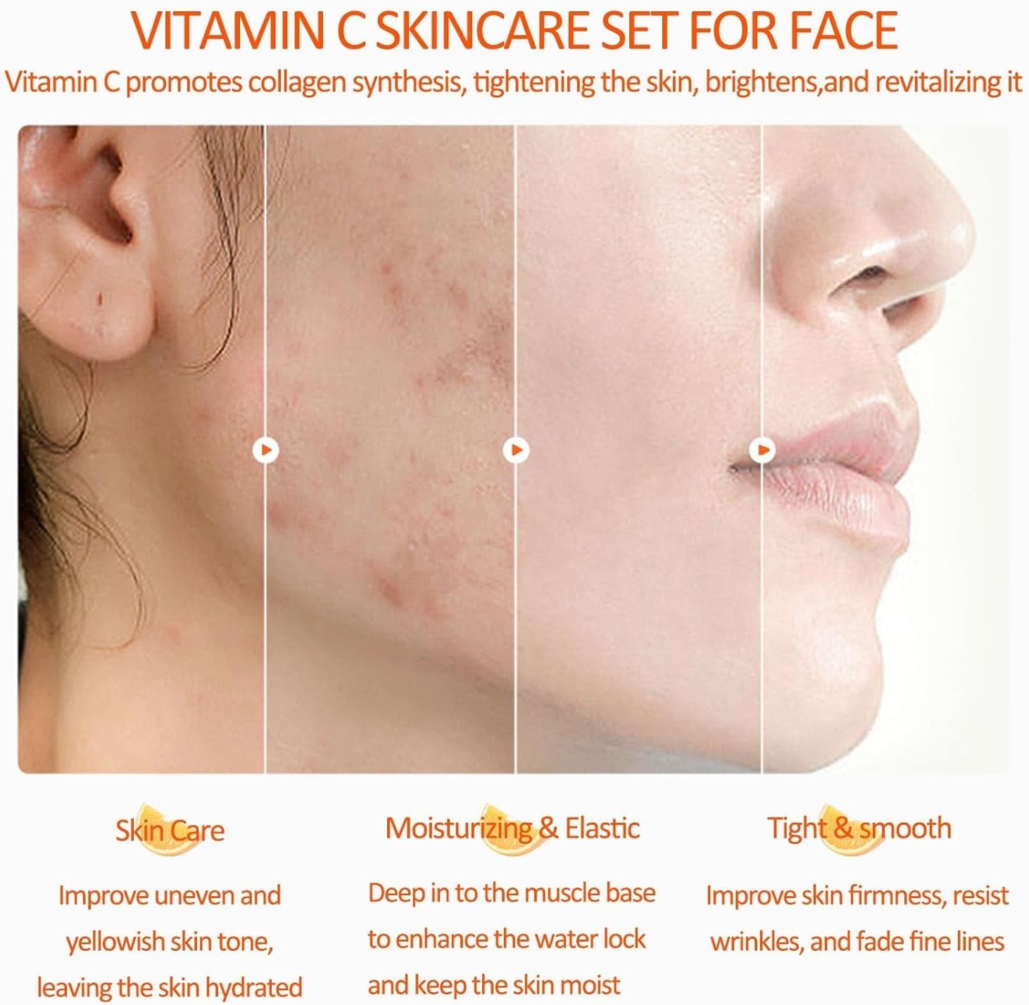👍[Antioxidant Skincare Set] – Vitamin C is a powerful antioxidant known for delaying skin aging, reducing dark spots, sun spots, aging spots, and excessive pigmentation. This vitamin C skincare product set can tighten the skin, smooth deep wrinkles, reduce the generation of fine lines and keep the skin hydrated, soft, and smooth.