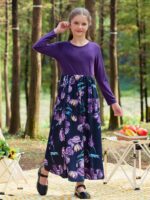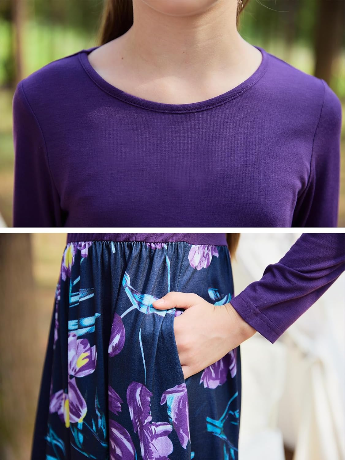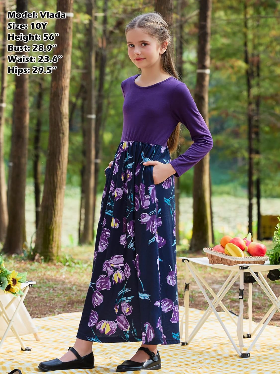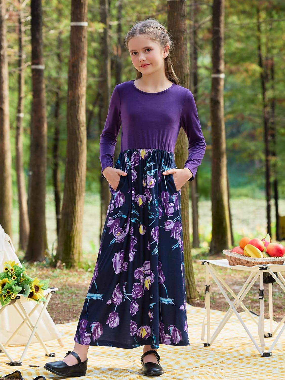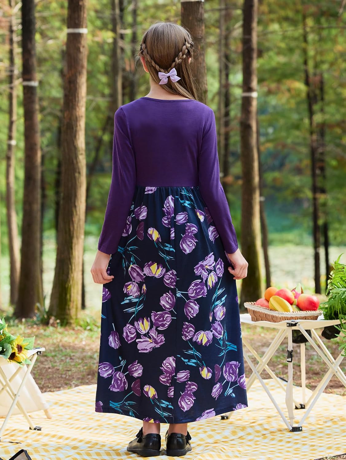 GORLYA Girl’s Short Sleeve Patchwork Floral Print Loose Casual Long Maxi Dress with Pockets for 4-14 Years Kids