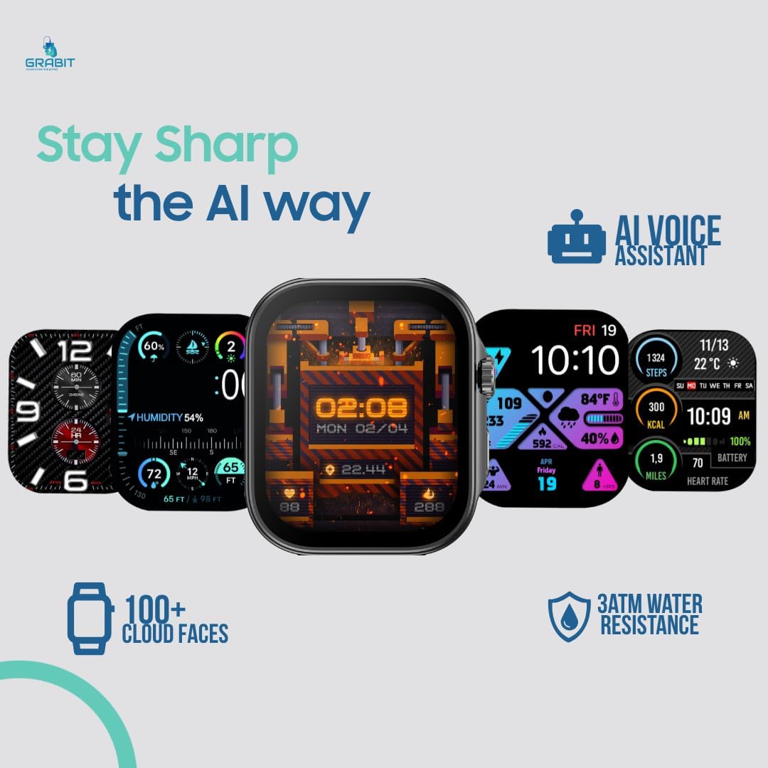 GRABIT G-SWANK Smartwatch AMOLED Display & Bluetooth Calling features a 1.99” Super AMOLED display, Bluetooth calling, and an AI voice assistant for seamless connectivity.