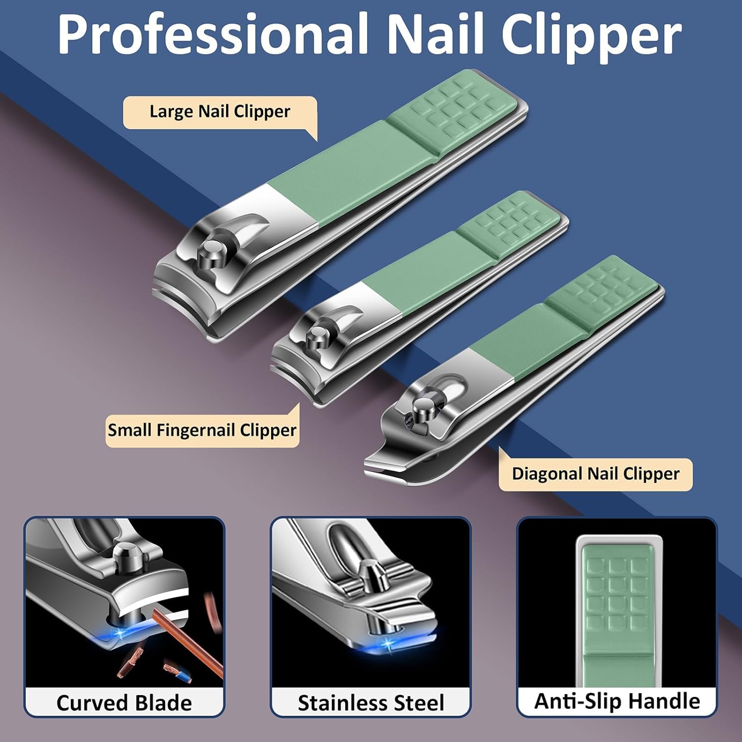 Professional Nail Kit Manicure Set: Manicure Set manicure made of high-quality material. The manicure pedicure kit has 3 different nail clippers, including a large nail clipper, a small nail clipper and a diagonal nail clipper. Nail clipper sets are sharp and durable. Keep your nails trimmed and free of spills, cracks and hangnails