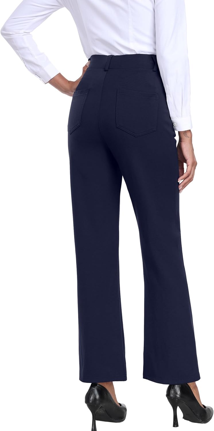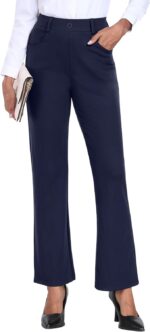GRECERELLE Ladies Trousers Stretchy Office Yoga Trousers Elasticated Waist Straight Leg Casual Work Trousers for Women UK Yoga Pants with Pockets