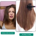 Hollow design: This 3D banging round comb allows air to circulate while drying your hair, making it ideal for styling with the heat of a hair dryer.Unique round shape plastic bristles work to separate the hair sideways instead of down, gently unraveling even the toughest tangles and make your hair soft and shiny.