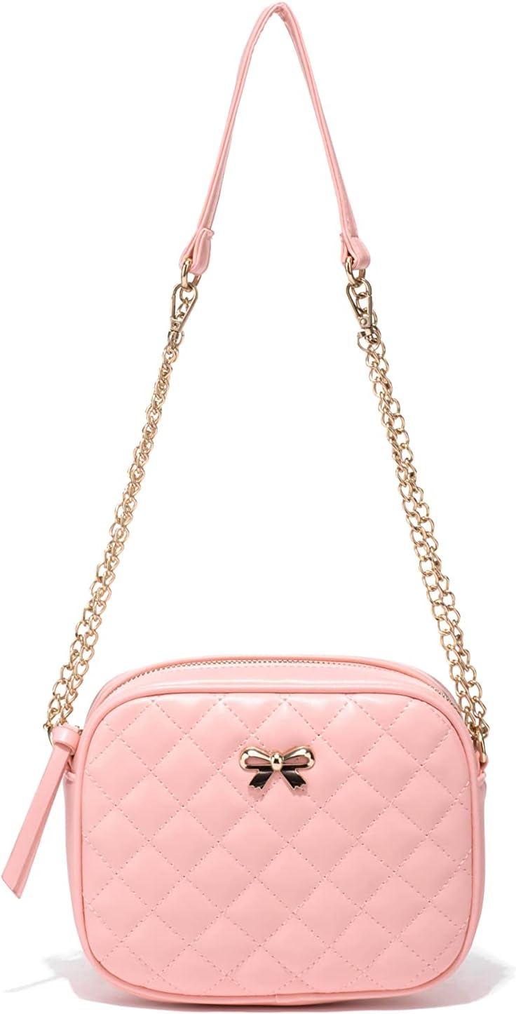 Hanbella Cross body Clutch Purses for Women & Teens – Cute Small Quilted Leather Shoulder Bag with Gold Chain for Girls