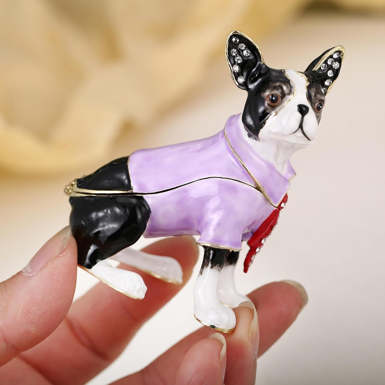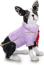 Hand Painted Trinket Box for Home Decor Accents, Enamel Hinged Jewelry Box for Bookshelf Office Table Desk Decoration, Classical Figurine Collectible Keepsake Animal Sculptures (Boston Terrier)