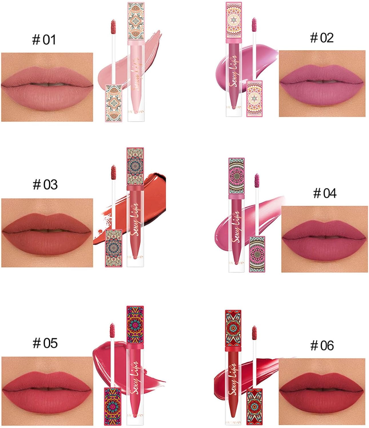 HANDAIYAN Lipstick Set Matte Liquid 6 Colors Long Lasting Waterproof for Women Highly Pigment Velvety Nude Super Stay Soft Hydrating & Lightweight Professional Moisturizing Makeup Lips Gift