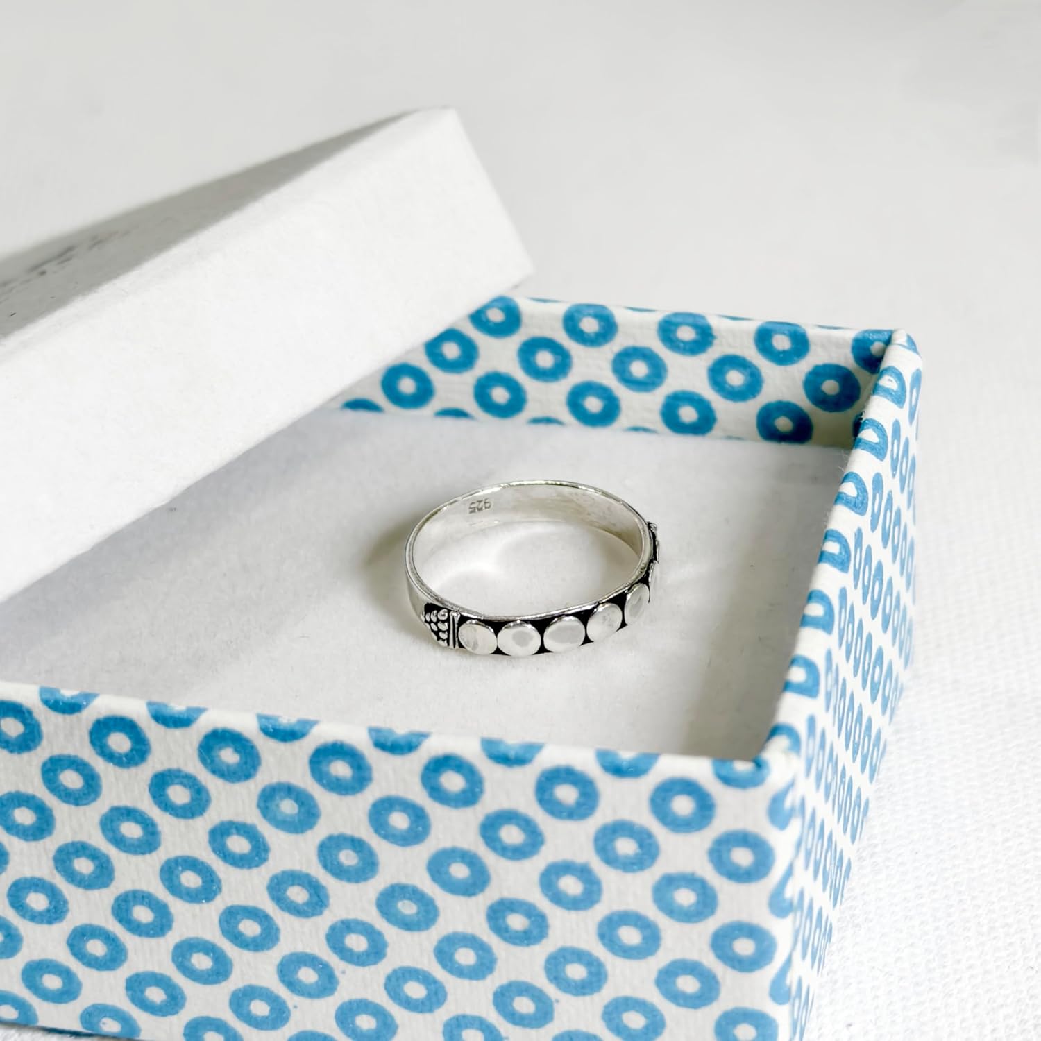 Introducing our delicate and elegant band ring, a versatile perfect piece for everyday wear. Crafted from 925 sterling silver, this ring features a subtle yet sophisticated design that effortlessly complements any outfit. Its understated elegance allows it to be worn alone for a minimalist look or stacked with other rings for a more layered and dynamic appearance. The intricate boho design of the band stands out beautifully, adding a touch of unique charm without overwhelming the finger. Weighing just 2 grams and featuring a comfortable band width of 3.5 mm, it is designed for both comfort and durability. Its lightweight ensures comfort, making it an ideal choice for daily wear. Explore the understated elegance and versatility of this band ring, and elevate your jewelry collection with a piece that is both stylish and practical. Whether worn solo or stacked, this ring is sure to become a beloved staple in your accessory line-up.