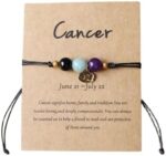 Elevate your style with this chic handmade zodiac pendant bracelet, a vintage-inspired fashion accessory that combines natural imperial stone, amethyst, and aquamarine for a captivating look. Crafted with meticulous attention to detail, this bracelet features twelve zodiac signs, making it a perfect gift for friends and loved ones during holidays or special occasions. Designed to complement any outfit, this bracelet comes with a blessing card, adding a touch of thoughtfulness to your gift-giving experience. Embrace the beauty of nature and astrology with this exquisite piece of jewellery that will undoubtedly become a cherished addition to your collection.