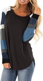 HARHAY Women’s Cotton Knitted Long Sleeve Lightweight Tunic Sweatshirt Tops Women Clothes B-Black&blue Stripe XXL